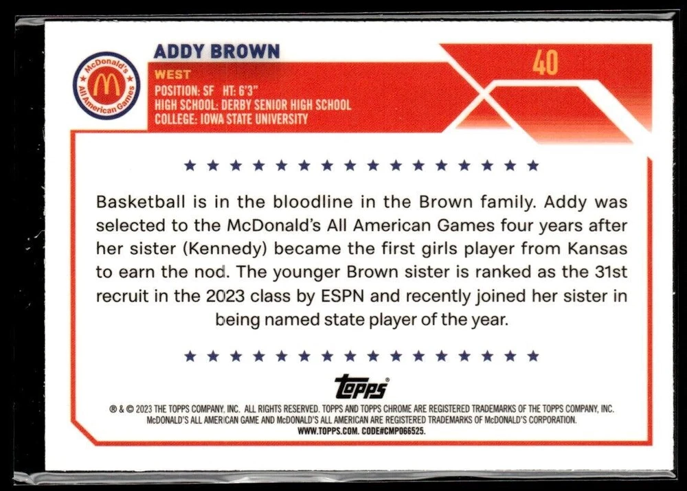 This card, crafted in the United States, is an exceptional item for collectors and sports enthusiasts. It serves as an impressive addition to any sports trading card collection and represents a valuable piece of history. The card features a high-quality design and vibrant imagery, making it a distinguished item that enhances any collection. Whether appreciated for its artistic presentation or the historical significance it embodies, this card is sure to captivate and impress. It is an excellent opportunity to acquire a unique collectible that holds enduring value. We are committed to providing exemplary service to our customers, which includes the careful shipping and handling of all items. Each item is meticulously protected during the shipping process. **Shipping Information:** - Cards priced at $3.99 or less will be shipped in an envelope without a tracking number, utilizing a penny sleeve and top loader for protection. While this option is cost-effective, please note that we are unable to accept responsibility for lost or damaged items under these circumstances, and refunds will not be issued. Should you prefer our premium shipping method, which includes tracking for a fee of $4.99, please inform us prior to processing your payment so that we can adjust the shipping method accordingly. - All orders are scanned, and it is important to note that chrome cards may appear darker than their actual color. This may result in some color variations due to the scanning process. If you have any inquiries or require further assistance, please do not hesitate to contact us. Thank you for your attention. Listing and template services provided by inkFrog