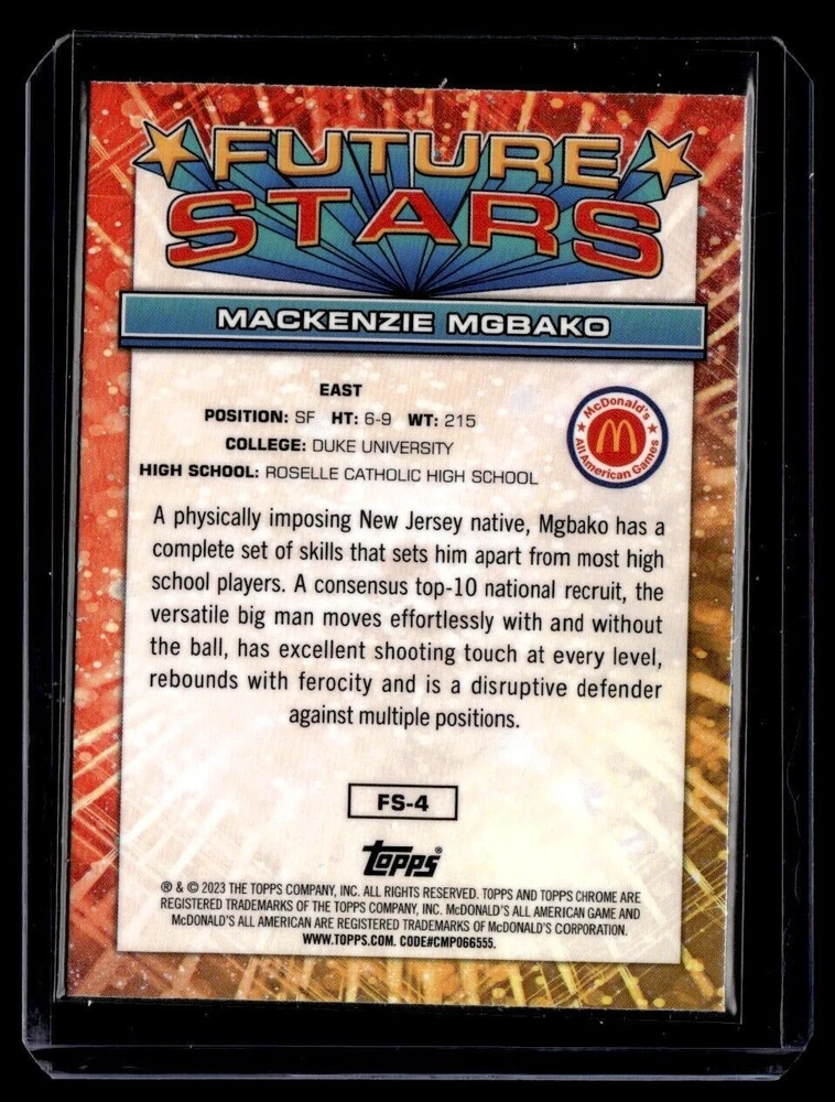 2023-24 TOPPS CHROME MCDONALD'S ALL AMERICAN MACKENZIE MGBAKO MCDONALD'S #9