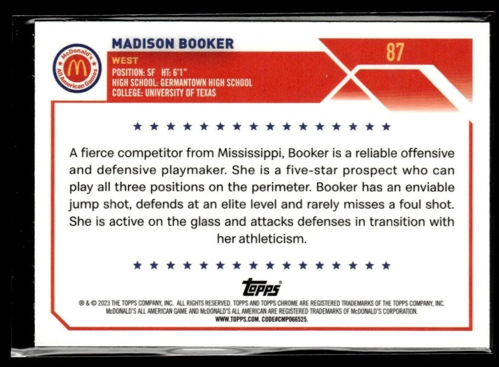 2023-24 TOPPS CHROME MCDONALD'S ALL AMERICAN MADISON BOOKER MCDONALD'S #87
