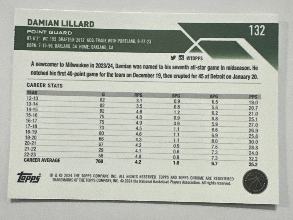 2023-24 Topps Chrome Damian Lillard Sapphire #132 Milwaukee Bucks