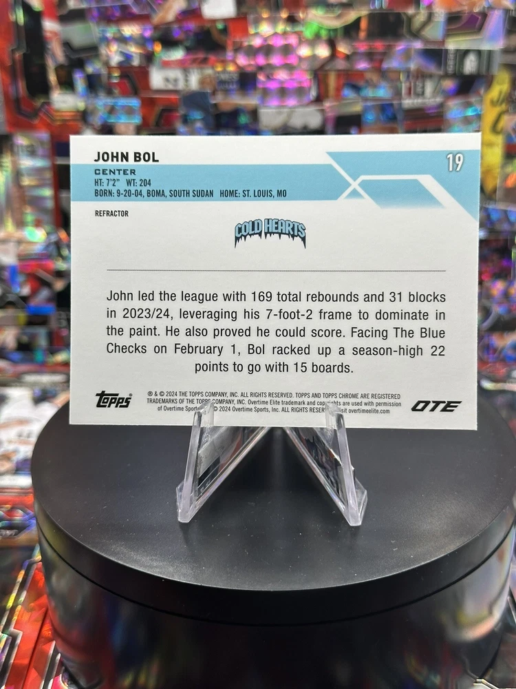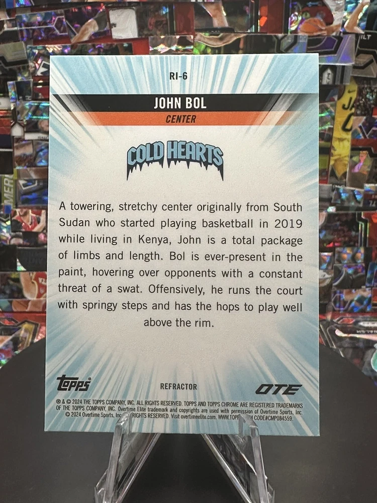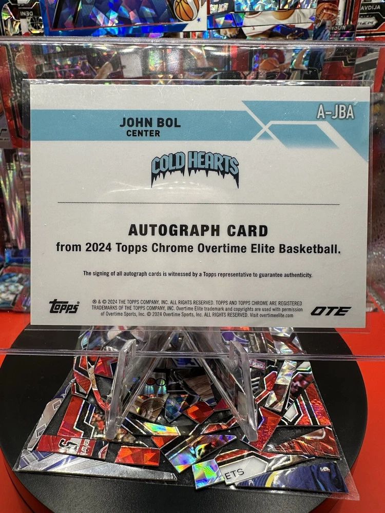 Season:2023-24Signed By:John BolCard Size:StandardSport:BasketballNumber of Cards:9Autographed:YesVintage:NoType:Sports Trading CardCountry/Region of Manufacture:United StatesManufacturer:ToppsMaterial:Card StockYear Manufactured:2023Autograph Format:Label or StickerLeague:National Basketball Association (NBA)Features:Box Topper, Insert, Rookie, Serial Numbered, Short PrintSet:2023-24 Topps Chrome OTEPlayer/Athlete:John Bol