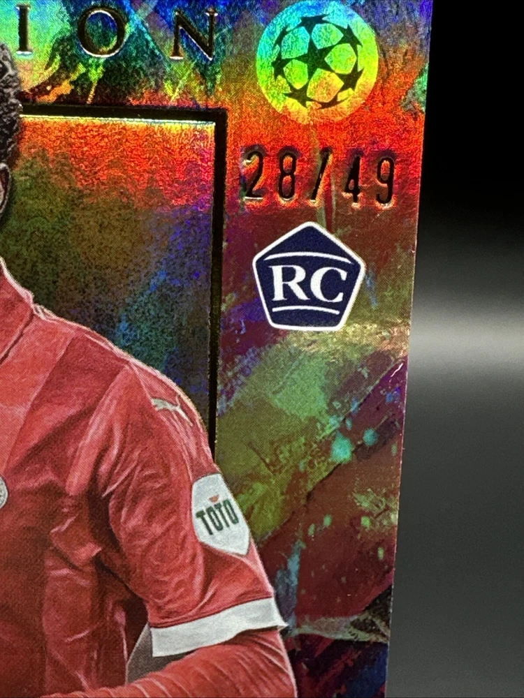 Card Number: 82 Card Size: Bowman Autographed: No Season: 2023-24 Type: Sports Trading Card Features: Rookie, Insert, Parallel/Variety, Serial Numbered Card Name: Star quality Vintage: No Sport: Soccer Parallel/Variety: Rainbow Foil Year Manufactured: 2024 Player/Athlete: Isaac Babadi Team: PSV Eindhoven Country/Region of Manufacture: United States League: UEFA Champions League Set: 2023-24 Topps Print Run: 28/49 Original/Licensed Reprint: Original Manufacturer: Topps Material: Card Stock, Paperboard Language: English