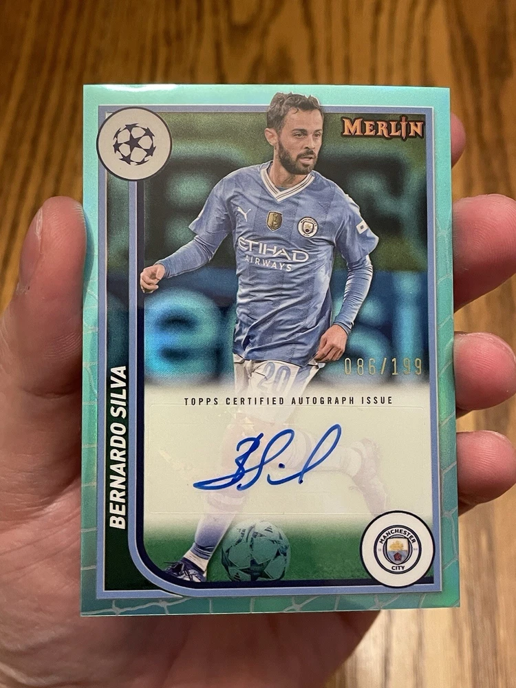 2023-24 Topps Merlin Bernardo Silva Auto Aqua Refractor #86/199 Manchester City