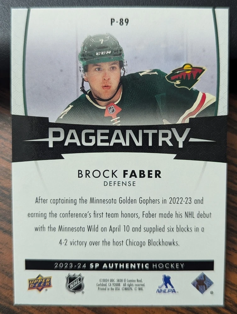 Please Read Below. You are bidding on item described below. 2023-24 Upper Deck SP Authentic Hockey Rookie Base Pageantry Brock Faber card#P-89 Bidding on item described in this section.