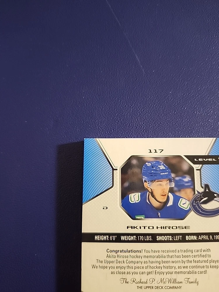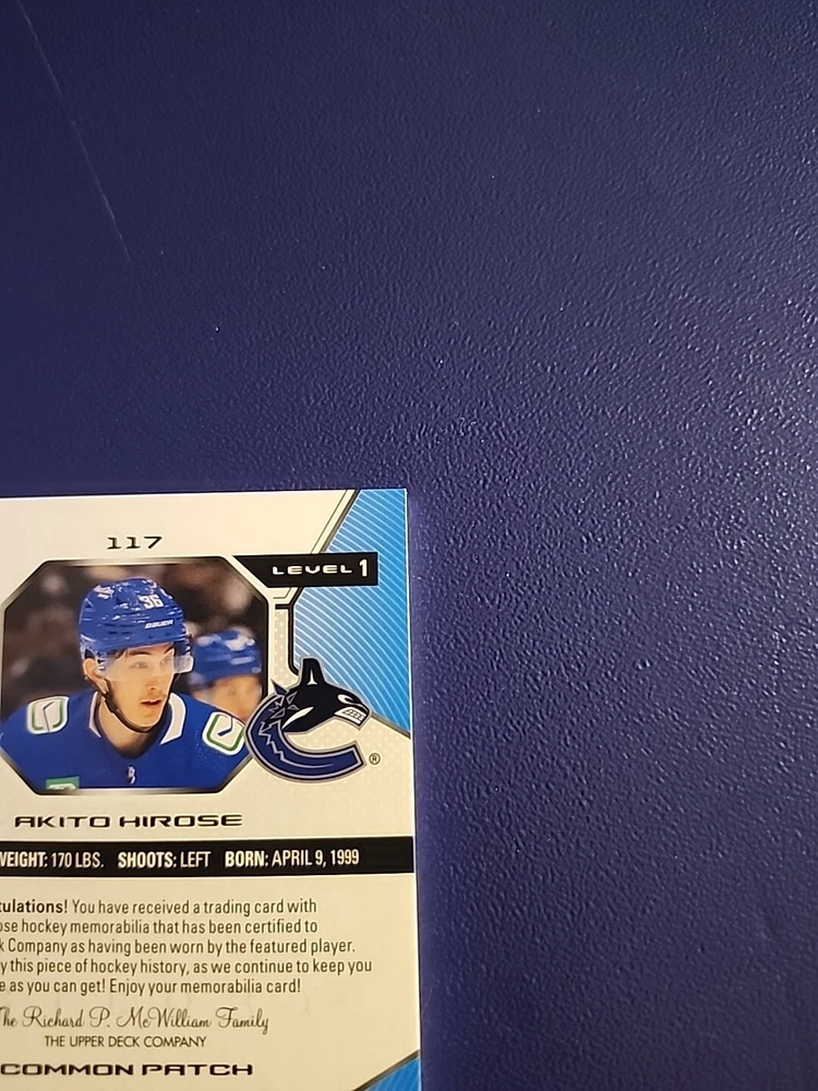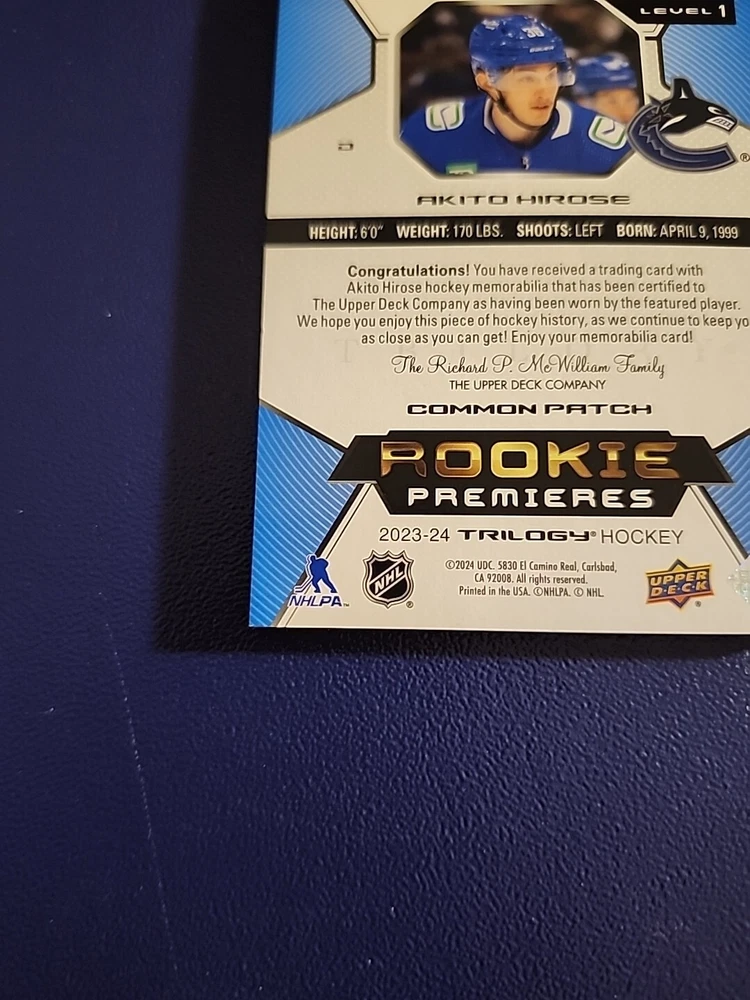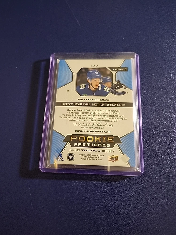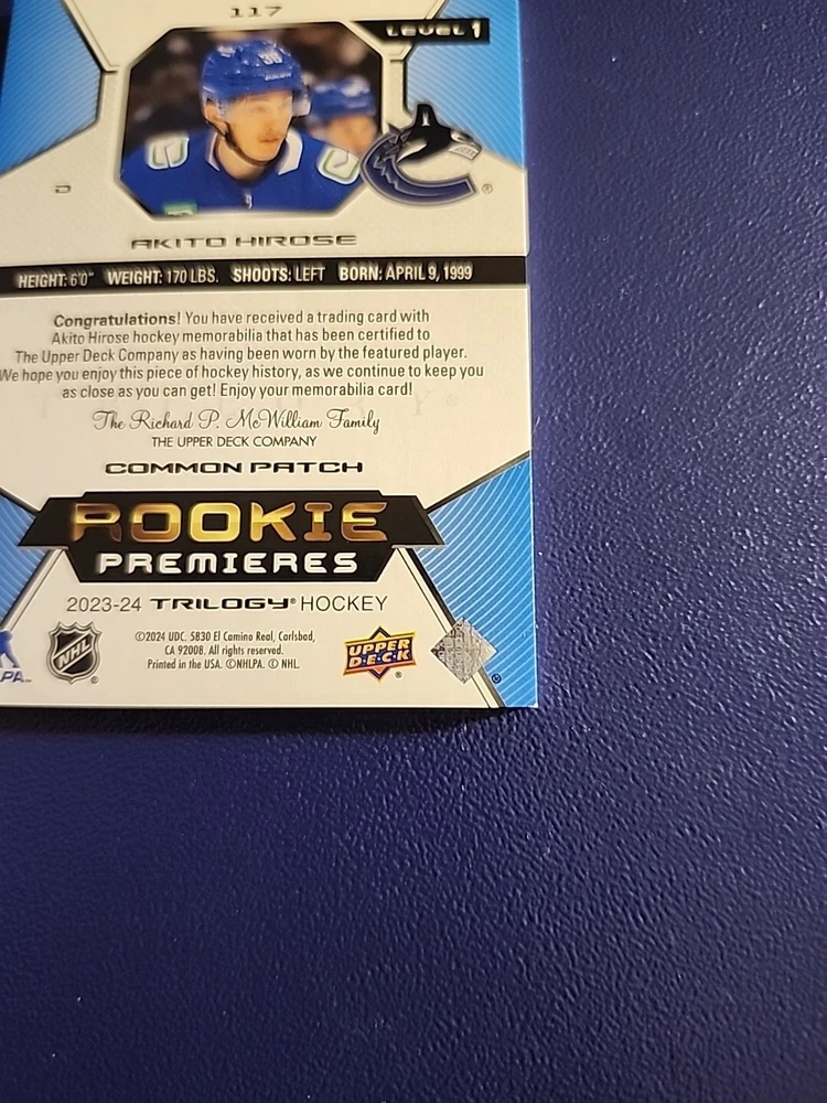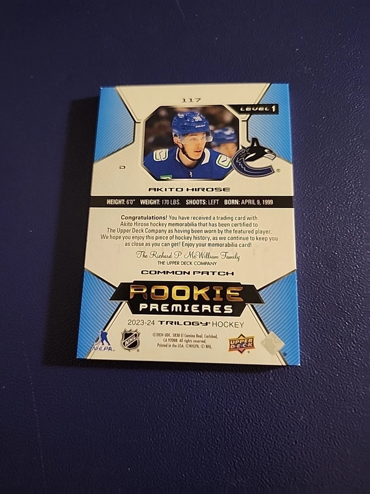 2023-24 Upper Deck Trilogy - Common Rookies Patch #117 Akito Hirose /49 (MEM,...