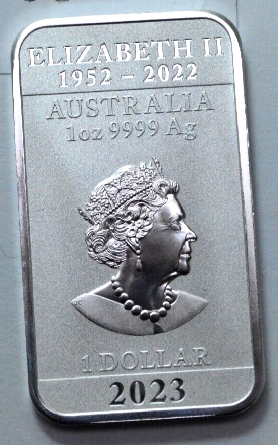 Brand/Mint: The Perth Mint Precious Metal Content per Unit: 1 oz Total Precious Metal Content: 1 oz Fineness: 0.999 Modified Item: No Composition: Silver Country/Region of Manufacture: United States Year: 2023 Shape: Bar