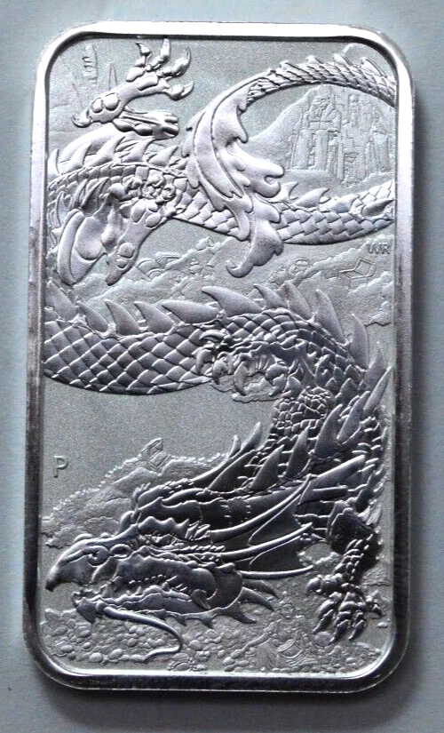 2023-P CHINESE DRAGON 1 oz 9999 Silver Rectangular Australia Coin Bar Perth Mint
