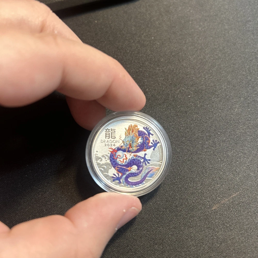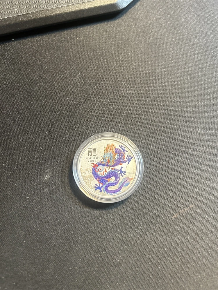 2024 Australia Purple Lunar Dragon BU Colorized 1/2oz Silver Coin. Shipped with USPS Ground Advantage.