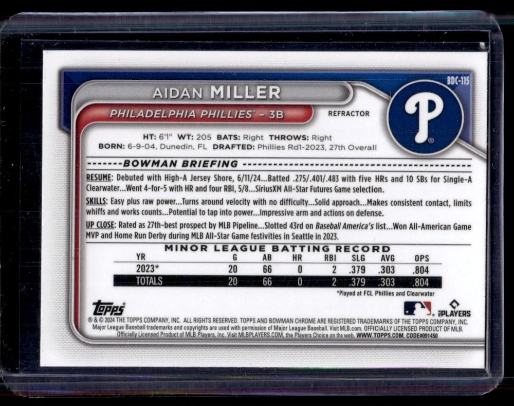 2024 Bowman Chrome Aidan Miller Refractor Rookie Card BDC-115