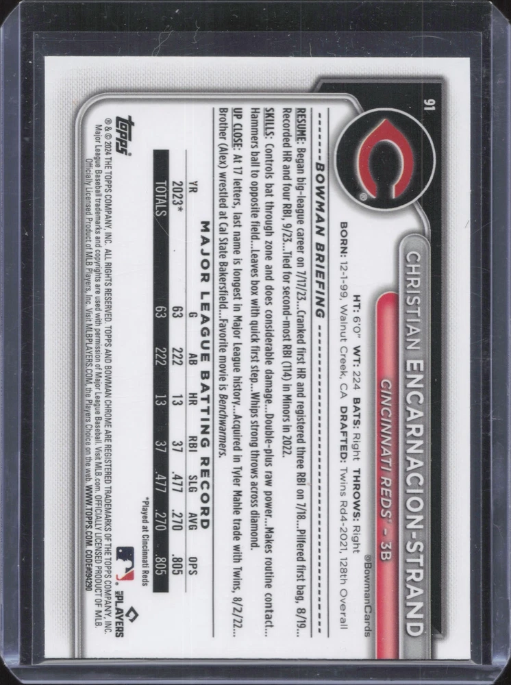 Sport: Baseball Autographed: No League: MLB Year Manufactured: 2024 Team: Cincinnati Reds Type: Sports Trading Card Season: 2024 Graded: No Player/Athlete: Christian Encarnacion-Strand Set: 2024 Bowman Chrome Manufacturer: Bowman