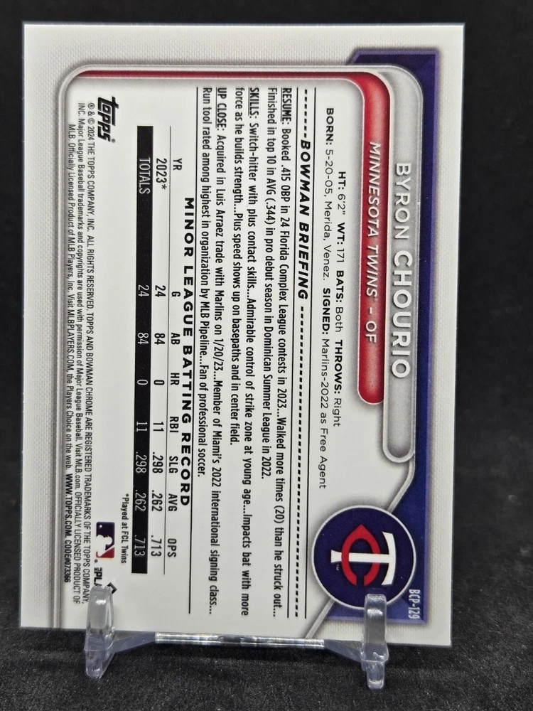 2024 Bowman Chrome Mega Box Prospects #129 Byron Chourio TWINS. Condition is Ungraded. Shipped with eBay Standard Envelope for Eligible Items up to $20.