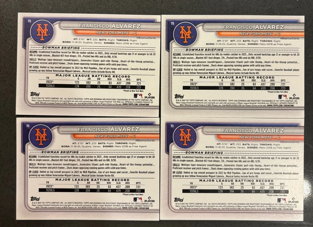 Home2024 Bowman Francisco Alvarez Lot (4) #75 New York Mets