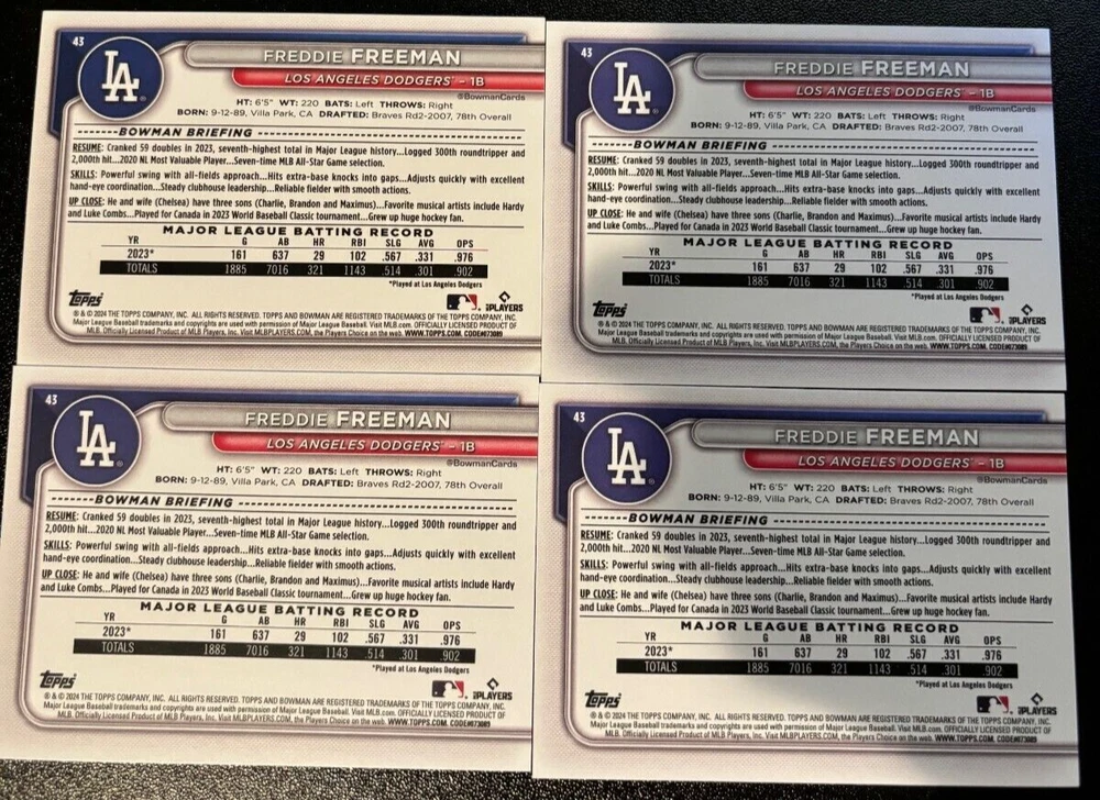 Home2024 Bowman Freddie Freeman Lot (4) LA Dodgers #43