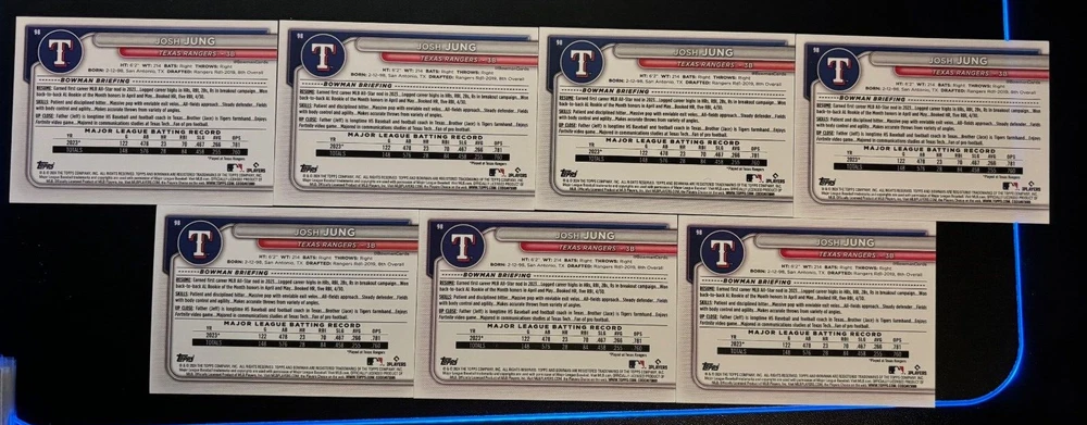 2024 Bowman Josh Jung #98 Lot (7) Texas Rangers