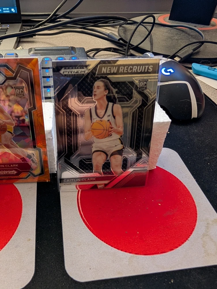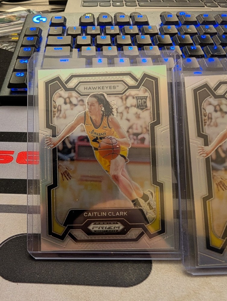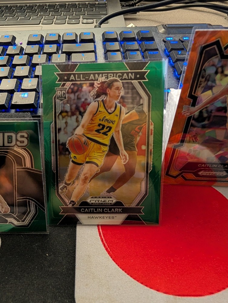 Elevate your collection with this 2024 Caitlin Clark Rookie Card Lot, featuring a stunning mix of silver, green, and orange cracked ice parallels. This lot includes six premium cards, each showcasing the remarkable talent of basketball player Caitlin Clark, captured in high-quality detail by renowned manufacturer Panini. As a fan of the Women's National Basketball Association (WNBA), you won't want to miss the chance to own these special rookie cards from the 2024 season. With their insert features and sleek design, they are a must-have for collectors and enthusiasts seeking to commemorate Clark's exciting entry into the professional league.