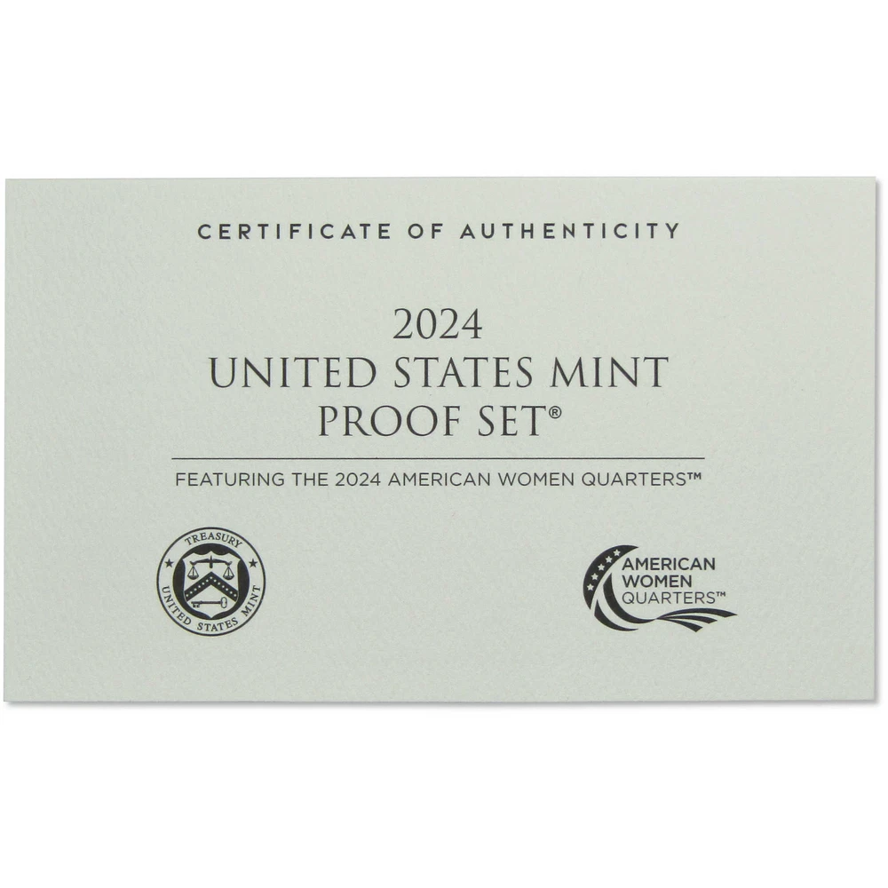 Home About Us Feedback View All Listings Contact Us Menu Home About Us Feedback View All Listings Contact Us 2024 Clad Proof Set U.S. Mint Original Government Packaging OGP COA This official 2024 U.S. Mint 10 coin Proof Set contains a Native American dollar, Kennedy half dollar, Roosevelt dime, Jefferson nickel and Lincoln cent, along with all five American Women quarters, with designs honoring Pauli Murray, Patsy Takemoto Mink, Mary Edwards Walker, Celia Cruz, and Zitkala-Sa. All coins bear the San Francisco "S" mint mark, and feature extra sharp images and mirror-like surfaces. The half dollar, quarters and dime are all copper-nickel clad. Comes with the original U.S. Mint packaging, including a certificate of authenticity. The images used for this listing are stock photos from our inventory. Your purchase is guaranteed to match the quality of the product shown. Profile Coins & Collectibles - More Coins for the Money! Coin Type U.S. Mint Proof Set Denomination 1C, 5C, 10C, 25C, 50C, $1 Date 2024 Mint Mark S Grade Proof Shop by category Coins: US Half Dollars Quarters Small Cents Dollars Dimes Nickels Three Cents Large Cents Two Cents Paper Money: US Store Newsletter Add our store to your Favorites to receive our email newsletters about new items & special promotions. Sign Up Home About Us Feedback View All Listings Contact Us Copyright © 2019 Profile Coins & Collectibles. All rights reserved. eBay template Design by OCDesignsOnline