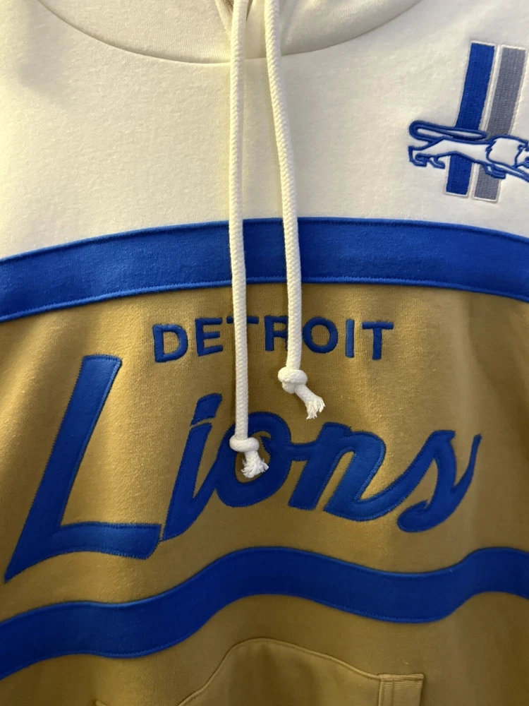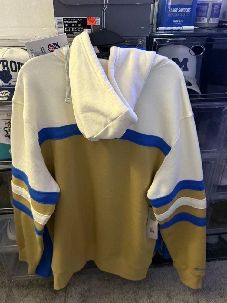 2024 Detroit Lions Mitchell & Ness Throwback Coach Hoodie - Sz L - Tan/Beige