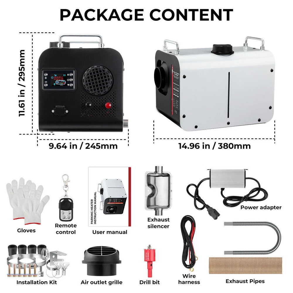eBay May you Like 12V Diesel Air Heater 8KW bluetooth APP LCD Thermostat Boat Motorhome for Car RV 98.51USD Buy it now Free shipping 8KW Diesel Air Heater 12V 24V bluetooth App LCD Remote + 110-245v Volt Converter 115.99USD Buy it now Free shipping Diesel Air Heater 8KW 12V LCD All in One bluetooth App For Car SUV Boat RV Bus. 99.99USD Buy it now Free shipping 2024 Diesel Air Heater All-in-one 12V 8KW bluetooth App LCD for Car RV Indoors 115.99USD Buy it now Free shipping Upgraded 12V Diesel Air Heater Parking Heater Remote Control For Truck Boat RV 88.34USD Buy it now Free shipping Store Category Other Car & Truck Tire Accessories For Toyota For GM Chevrolet For Ford For Jeep For Nissan For Mitsubishi For Chrysler For Honda For Mazda For Tesla For Mercedes For Kia Car & Truck Body Exterior Part Car Mirror Glass Car Pillar Post Car Mirror Cover Car Bumper Bracket Windshield Wiper Arm & Blade Car Window Visors Car Door Handle Cover Car & Truck Interior Trim Car Accessory Car Tools Other Automotive Care & Detail Vehicle Electronics Motorcycle Parts Others NEWSLETTER Add my Store to your Favorites and receive my email newsletters about new items and special promotions! USER SERVICE ‹ › ‹ › ‹ › ‹ › ‹ › ‹ › ‹ › ‹ › ‹ › ‹ › ‹ › ‹ › ‹ › ‹ › ‹ › Features: New model 2024,With bluetooth App,remote control display is fully upgraded and more convenient to use - Calcifying liquid crystal - Heating can be applied to heat the cab of transport vehicles, vans, storage battery cars and all kinds of other vehicles. - Can remove frost from the window. - Ecological product, low emissions, low fuel consumption; exhaust emissions of heaters to meet the emission requirements of Euro IV engines. - Compact structure, easy to install. - Can disassemble to a new car when replacing the vehicle. - Technology Volatile, by ceramic ignition socket the fuel heating evaporates into gas, rapid ignition, complete combustion. - The use of advanced automatic control technology, with abnormal operating conditions reliable. - Fuel, electricity, temperature can be set arbitrarily. - May use diesel as fuel. - bluetooth app remote switch. Specifications: Brand GEARZAAR Configuration fuel tank 5L Rated power 5KW~8KW Rated voltage 12V-24V universal bluetooth function YES Fuel consumption 0.1 liters - 0.64 liters/hour Remote control effective distance 100 meters Radiator working temperature -40~+50°C Operating temperature of oil pump -40~+40°C Color White & Black(as shown) Shell Plastic+Metal Packaged included: 1 x Parking heater 1 x 12v-24V cable harness 2 x fixed washers 1 x Silencer 1 x muffler tailpipe 1 x L-shaped installation accessories for muffler 3 x installation screws for muffler 1 x Remote Control 1 x 30mm drill 1 x Wind ripple tube cover 1 x Wind Ripple Tube 2 x large metal clamp buttons 4 x small metal clamp buttons 8 x screws 2 x gloves 4 x feet 4 x foot screws 1 x power adapter Note: 1. Please allow 0.5-1cm differences due to manual measurement. 2. Due to the light and screen difference, the item's color may be slightly different from the pictures. Payment Delivery details Returns Contact us We work from Monday - Saturday 9:00AM - 6:00PM PST, but we will reply you once we get your message .There will be some delay on response if you send message or E-Mail on Sunday. 1. All items will be shipped in 24 hours after receiving your payment . 2. We ship this item to US only via USPS first class mail. It usually takes 2-5 working days to deliver. 1. We offer 30 days return policy. 2. Please contact us within 30 days from the date you receive your package if you have any questions with the products . 3. Refund will be sent after we got your returned package. 4. All returned items should be in the packaging with tracking number. We work from Monday - Saturday 9:00AM - 6:00PM PST, but we will reply you once we get your message .There will be some delay on response if you send message or E-Mail on Sunday. uesfullinks About us Contact us Add to FAVS Feedback Store home join our newsletter Add my Store to your Favorites and receive my email newsletters about new items and special promotions! Contact Do you have any questions about our offers? Feel free to contact us anytime via the eBay contact form. May you Like 12V Diesel Air Heater 8KW bluetooth APP LCD Thermostat Boat Motorhome for Car RV 98.51USD Buy it now Free shipping 8KW Diesel Air Heater 12V 24V bluetooth App LCD Remote + 110-245v Volt Converter 115.99USD Buy it now Free shipping Diesel Air Heater 8KW 12V LCD All in One bluetooth App For Car SUV Boat RV Bus. 99.99USD Buy it now Free shipping 2024 Diesel Air Heater All-in-one 12V 8KW bluetooth App LCD for Car RV Indoors 115.99USD Buy it now Free shipping Upgraded 12V Diesel Air Heater Parking Heater Remote Control For Truck Boat RV 88.34USD Buy it now Free shipping