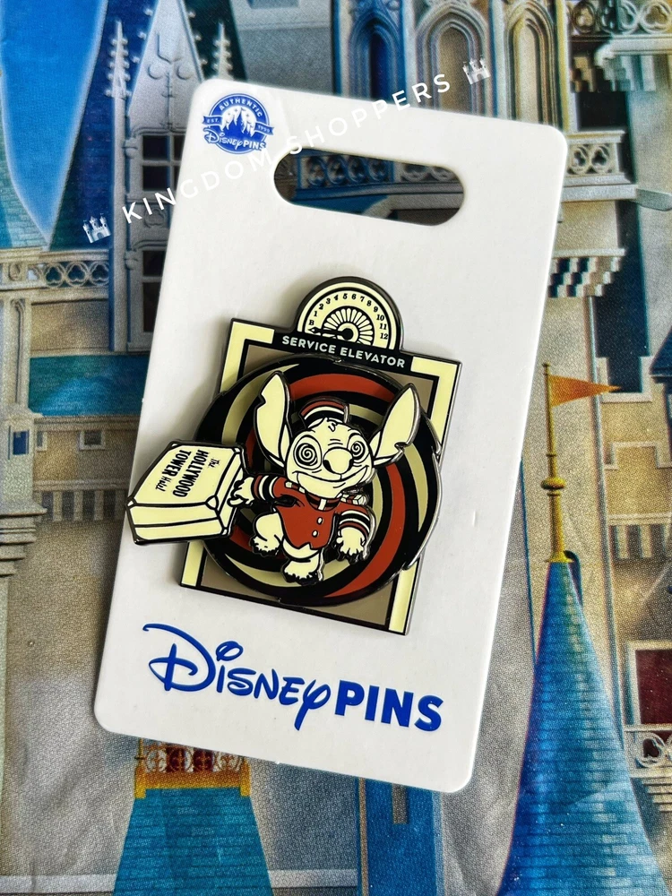 This collectible pin set features 4 different pins as shown from the popular Disney theme park attraction, Tower of Terror.