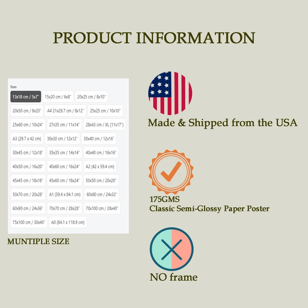*** Please choose the style you want and leave a note or message me! Describe: ? Printed on 200GMS glossy paper ? No frames or decorations included ? Shipped in protective, wrinkle-free paper tubes ? Printed and shipped from USA *** Policy for orders: We confirm and produce orders the same day, so please check before ordering, orders cannot be canceled or changed once we have finished printing. - For US domestic orders: After receiving the goods, please check, if there are errors, damage, confusion, ... please contact the shop. Complaint time does not exceed 10 days from the date of successful delivery of the order. - Foreign orders: Please track your order, if it is more than 18 days and you still have not received it, please contact us, the time to complain is not more than 30 days. (Note: beyond the time of complaint, the shop will not process the order) - The shop is ready to refund the order if the fault belongs to the shop. Cases of ordering the wrong size, wrong quantity, giving the wrong delivery address, leading to lost orders, ... we are not responsible for refunds, resends! Wishing you a happy shopping!