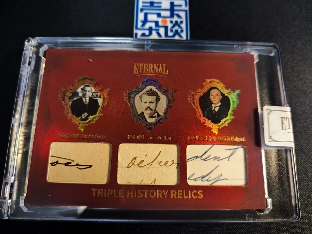 Autographed: No Franchise: World Celebrities Year Manufactured: 2024 Character: Guccio Gucci, Louis Vuitton, Sotirio Bulgari Autograph Format: Cut Card Name: Authentic History Relic Features: World Celebrities Type: Non-Sport Trading Card Manufacturer: Eternal Country/Region of Manufacture: China