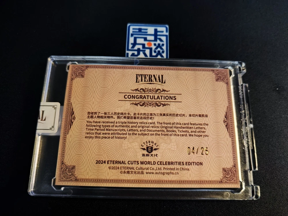 Features: World Celebrities Country/Region of Manufacture: China Character: Johann Strauss II, Peter Tchaikovsky, Franz Schubert Manufacturer: Eternal Year Manufactured: 2024 Type: Non-Sport Trading Card Autographed: No Card Name: Authentic History Relic Autograph Format: Cut Franchise: World Celebrities