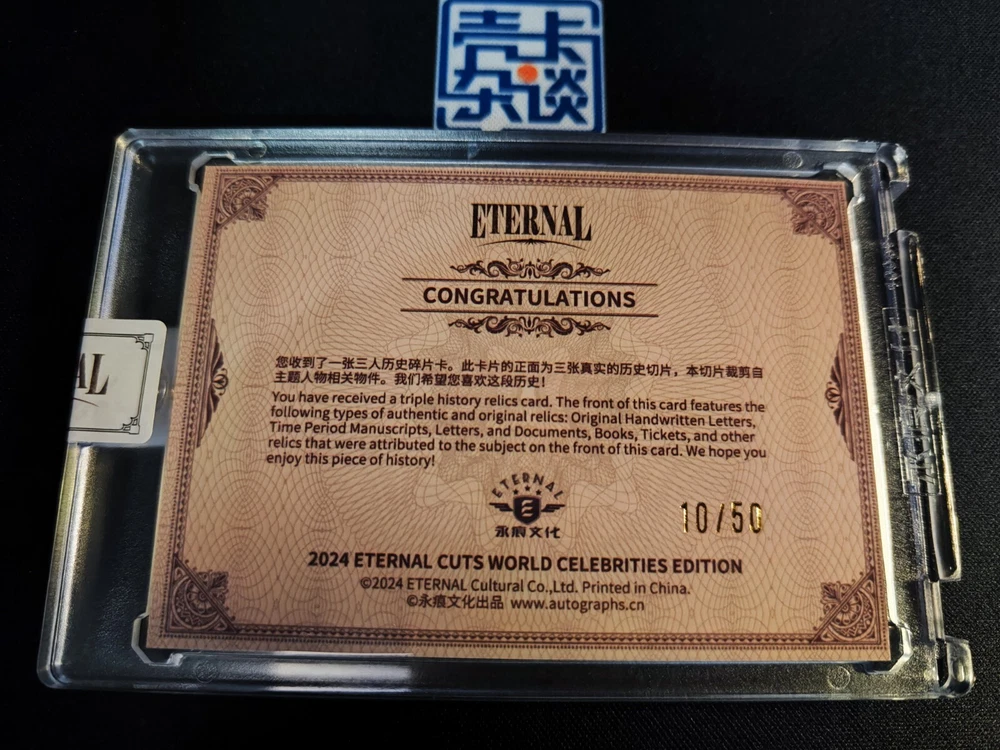 Autograph Format: Cut Type: Non-Sport Trading Card Country/Region of Manufacture: China Manufacturer: Eternal Card Name: Authentic History Relic Franchise: World Celebrities Character: George Washington, Abraham Lincoln, Benjamin Franklin Year Manufactured: 2024 Features: World Celebrities Autographed: No