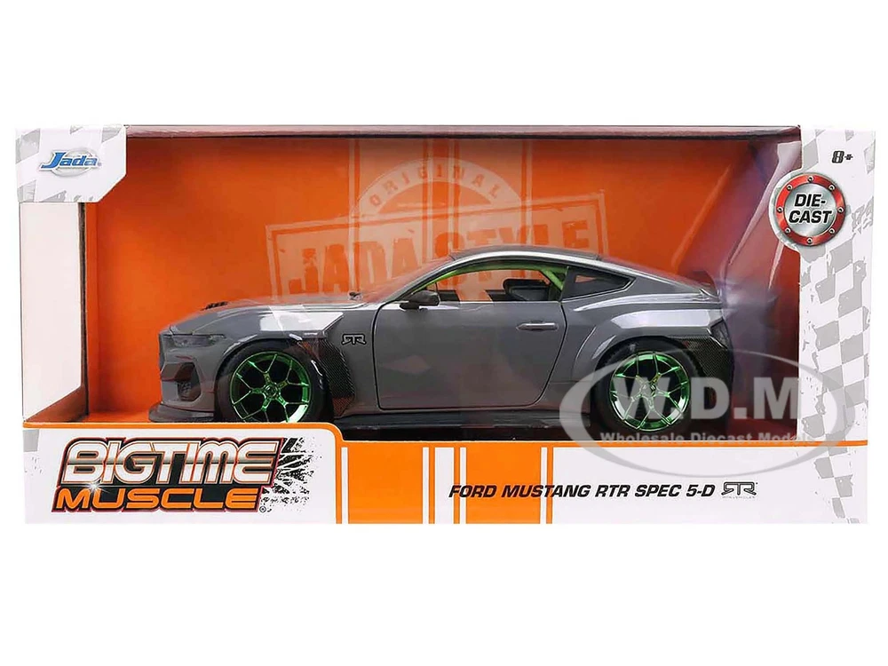 SAVE WHEN BUYING MORE!!! Buy as many items as you wish and we will ship them for one low shipping cost to 48 continental U.S. states physical addresses. Example: Shipping cost for most 1/24 scale items is $10, for 1/18 scale items is $12. If you use Add to cart button and purchase 5 items in 1/24 scale and 5 items in 1/18 scale, your shipping cost will be only $12 for 10 items. In order to request combined shipping for signed in desktop users: Please use Add to cart button for desired items, click Go to cart button and press Request total from us before paying and we will send combined shipping invoice shortly. If checking out as a Guest or using a mobile version, please use Add to cart button then click Go to cart button , press Go to checkout button, request extra shipping refund in Message to seller section and finalize payment by pressing Confirm and pay button. We will refund extra shipping cost shortly. DESCRIPTION: Brand new 1/24 scale diecast car model of 2024 Ford Mustang RTR Gray with Green Wheels "Bigtime Muscle" Series die cast model car by Jada. Brand new box. Real rubber tires. Officially licensed product. Opening hood, doors and trunk. Manufacturer's original unopened packaging. Made of diecast metal with some plastic parts. Detailed interior, exterior, engine compartment. Dimensions approximately L-8, W-3.5, H-2.125 inches. PAYMENT INSTRUCTIONS: We gladly accept paypal. Tracking info is free upon request. SHIPPING INFO: We do combine shipping cost for two or more items purchased. Please check shipping and payment section. In order to receive combined invoice for multiple purchases, please purchase items and let us know when you are done shopping, so we can send you one combined invoice. We can only combine shipping cost if items paid in one transaction. Dear Valued Customer! We appreciate your business. BUY WITH CONFIDENCE Fast Order Fulfillment 99% of orders are shipped within 24 hours or sooner. Simple Return Policy Thirty days simple returns. More than 10 Years of Experience Family owned and operated, we’ve had the experience of selling online for more than 10 years. Satisfaction Guaranteed! Our feedback says it all. And now, we hope to have the chance to prove we are the best to you! Competitive Pricing and Unrivaled Selection We are the number one direct distributor of diecast model cars in the USA, so we are able to provide very competitive pricing. Our stock selection is unrivaled with over 4,500 different items. Quality Shipping & Handling We package all our orders with care using bubble wrap to protect models from damage in transit. Each model that has a fragile window box is covered with carton protection. Excellent Customer Service Our customer service is second to none with thousands of returning, satisfied customers from all over the world.