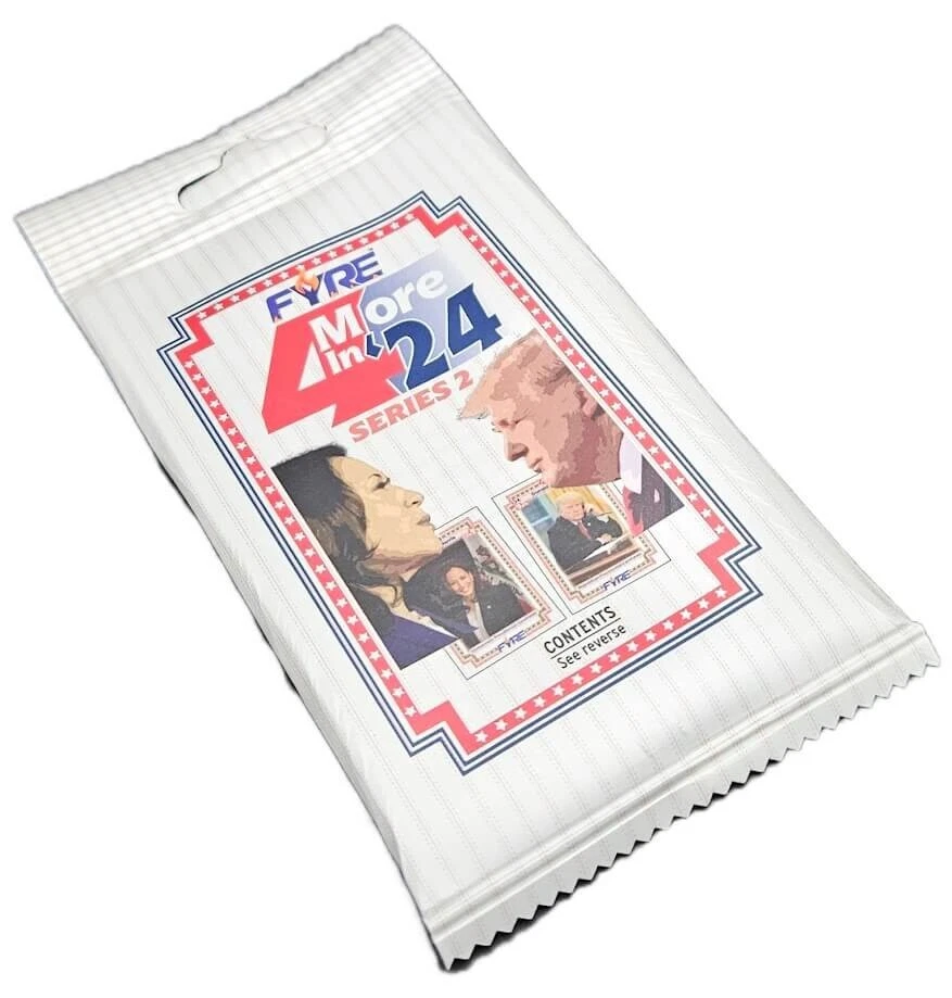 2024 Fyre 4 More In 24 Election Series 2 Hobby Pack 2024 Fyre 4 More Series 2 Political Trading Cards - Hobby Pack IN STOCK Each Pack Contains 4 4Moreln'24 cards + 1 Fyre Rainbow Parallel card Look For Special Packs Containing 4 4Moreln'24 cards + 1 Autograph card OR 4 4Moreln'24 cards + 1 Fabric Relic Card
