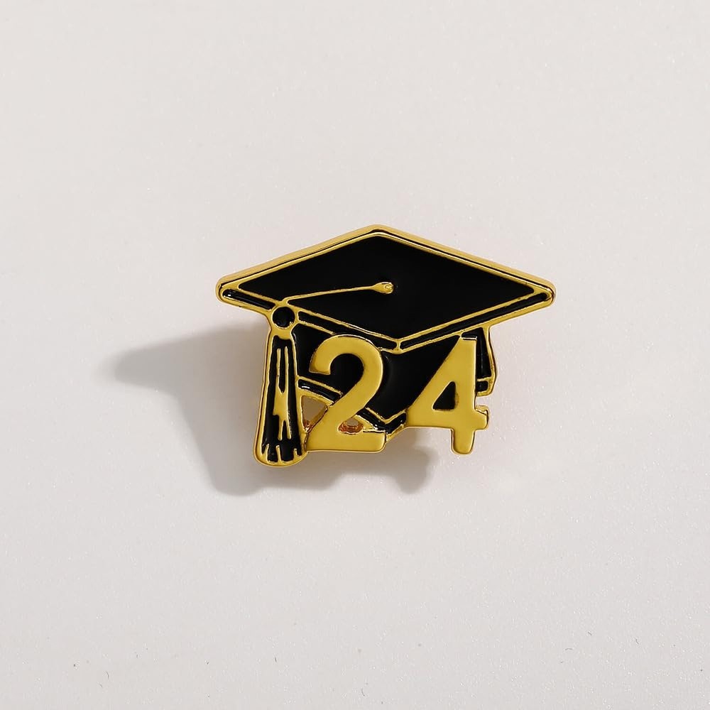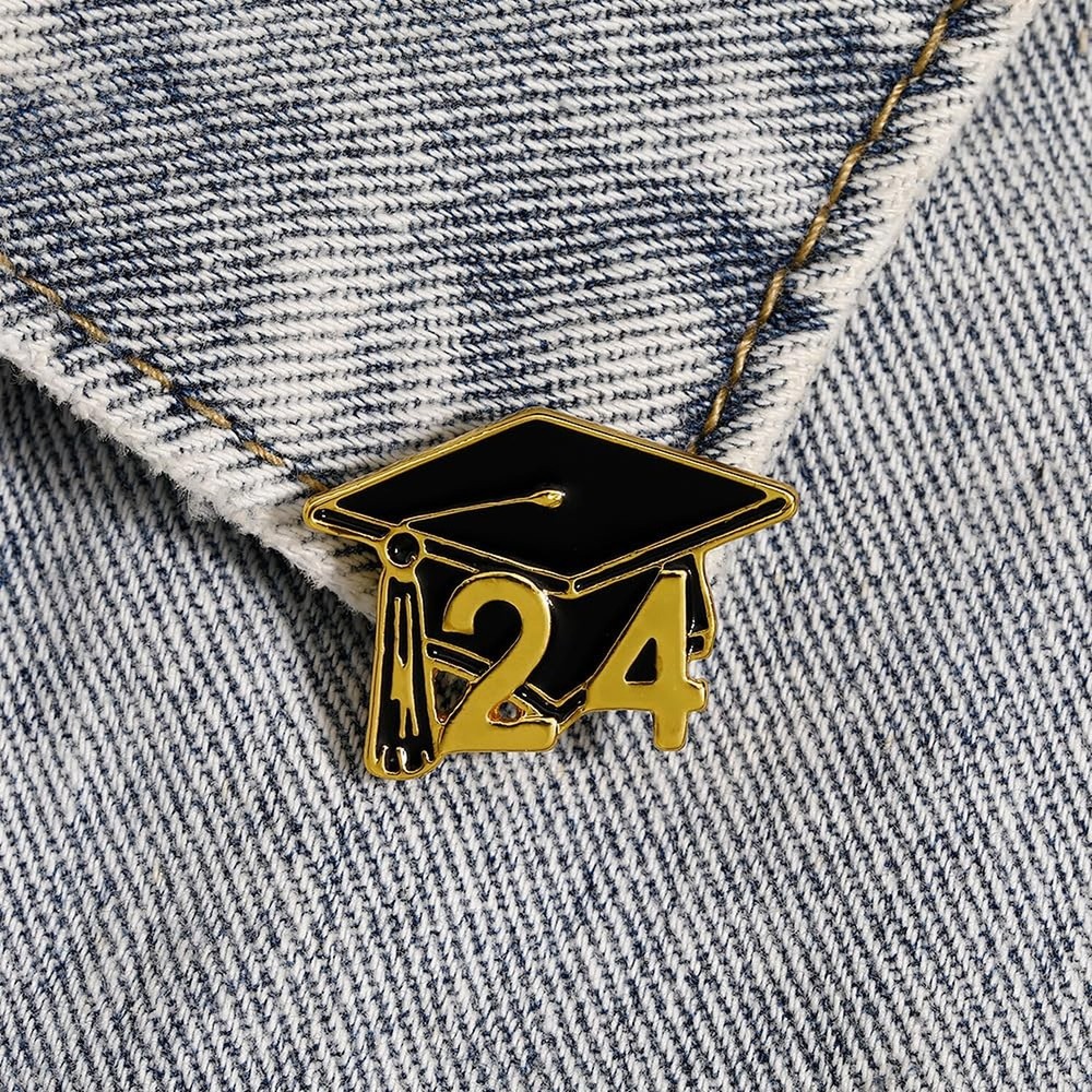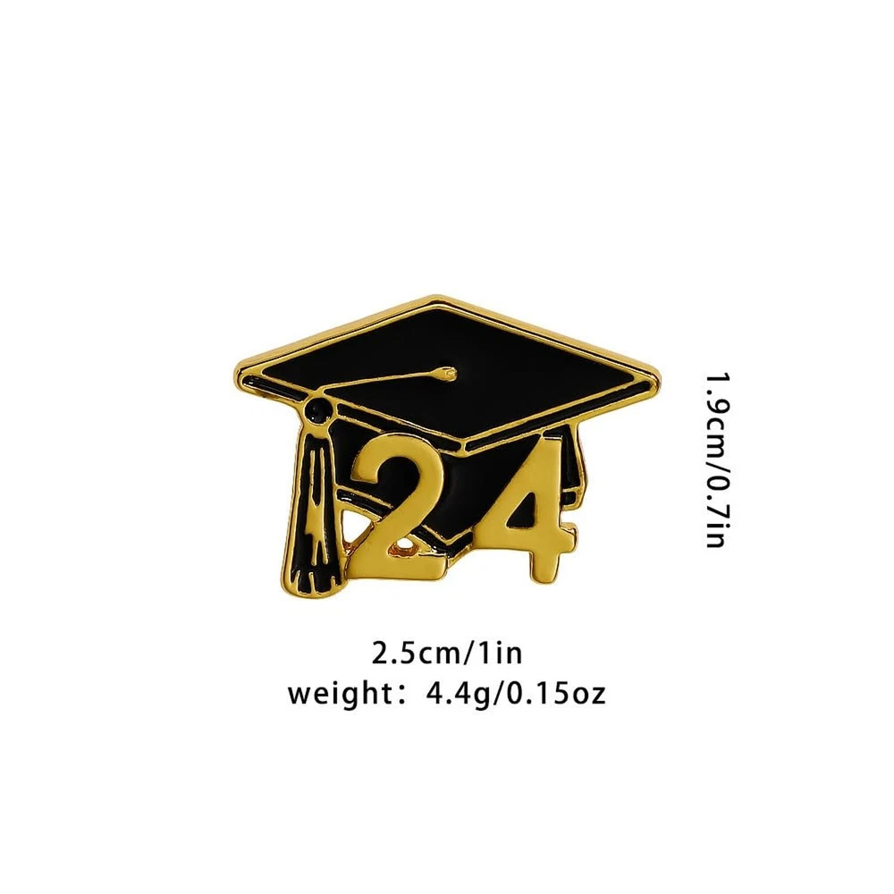 2024 Graduation Cap Enamel Pin Brooch for Apparel in Black and Gold