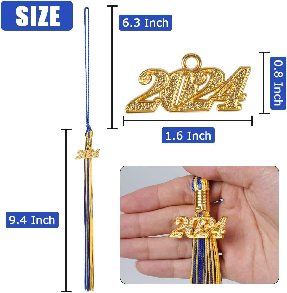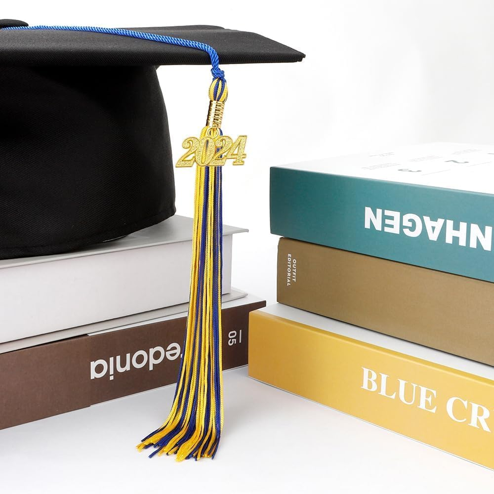 Store New Arrivals Add to Favorite View Feedback 2024 Graduation Cap Tassel with Gold Charm - Blue & Gold Description Item Weight 0.317 ounces Color Blue Gold Manufacturer Lhocm Package Dimensions 9.29 x 1.85 x 0.43 inches Size 2024 πŸŽ“πŸŽ“ Application: Elevate your graduation experience with our meaningful graduation tassel with charm. It's not just an accessory; it's a symbol of your achievement. Perfect for adorning graduation hats and dresses, and a thoughtful addition to graduation gifts and memorabilia. achievement. Perfect for adorning graduation hats and dresses, and a thoughtful addition to graduation gifts and memorabilia. πŸŽ“πŸŽ“ Features: Crafted from premium polyester, our graduation tassel boasts a smooth surface, ensuring both comfort and durability. Its soft yet sturdy construction makes it an exceptional accessory for your cherished graduation cap. πŸŽ“πŸŽ“ Tassel Dimensions: With a tassel length of 9.4 inches and a hang loop length of 6.5 inches, our tassel is designed to perfectly complement your graduation cap and gown. It's a fitting embellishment for your special day. πŸŽ“πŸŽ“ Package Includes: Your purchase includes 1 piece of graduation tassel, each adorned with a radiant gold 2024 year charm. These tassels are more than just decorations – they hold the memories of your hard-earned achievement. πŸŽ“πŸŽ“ Customer Satisfaction: Your happiness is our priority. Should you have any inquiries or concerns, don't hesitate to reach out to us through "contact sellers." We're committed to providing exceptional support to ensure your satisfaction. Your graduation experience matters to us! Elegant Details: Each tassel is adorned with a charming golden 2024 year pendant, fastened securely by a reinforced metal clasp holder. This intricate embellishment adds a touch of beauty and sophistication to the accessory. Versatile Applications: Perfect for Commencements and Celebrations: These tassels are not just accessories; they are an integral part of your graduation experience. Whether worn on garments or used as adornments during graduation ceremonies and parties, they will remain as cherished keepsakes, preserving the essence of your joyful memories. Specifications: Tassel Length: 22 cm Hang Loop Length: Approximately 17 cm Crafted from Quality Materials: Made from durable polyester material, ensuring longevity and retaining its pristine appearance. Elegant Hue: Available in a serene shade of blue, symbolizing wisdom and accomplishment. Thoughtful Quantity: Each package includes a set of 2 tassels, providing you with extra options for personalization and gifting. Package Contents: 2 Graduation Tassels 2 Exquisite Golden 2024 Year Charms These enhancements refine the description to be more detailed and appealing, focusing on the quality, versatility, and sentimental value of the graduation tassels and their accessories. ABOUT US We offer the best prices around on high quality products. Our E-store includes media such as books, movies, music and games while offering electronics, toys, sporting apparel, clothing, tools, general home, garden items and more. SHIPPING We are always working hard to ensure your package arrives as soon as possible. Please understand that some factors like weather, high postal traffic, and the performance of shipping companies are outside of our control. We offer free shipping to the lower 48 states and ship within 2 business days of payment, usually sooner. We do not accept P.O. Boxes. Please provide a physical address. RETURNS We offer a 30-Day Return Policy on items which you are not completely satisfied with. You have the option for a full-refund or an exchange of the item. No returns are available on items shipped outside of the USA. PAYMENT We accept PayPal. CONTACT US This page content is yet to come Please ad us to your favorite seller and visit again later Thank You