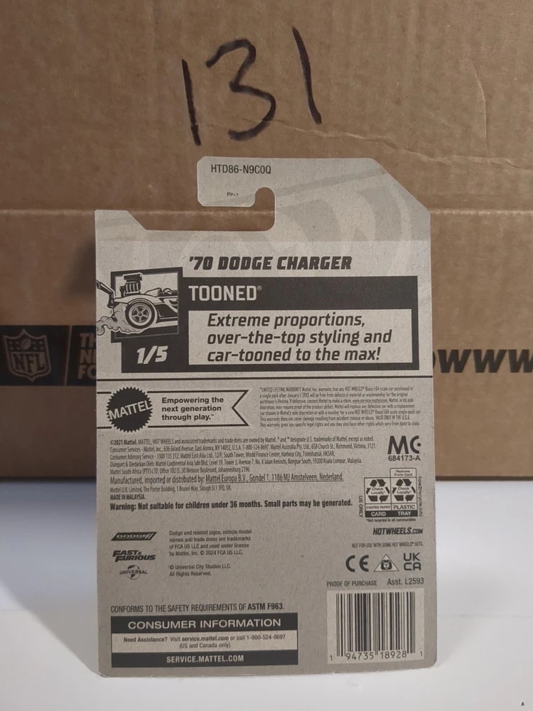 This 2024 Hot Wheels toy car is a must-have for any Fast & Furious fan. Featuring a stunning silver color and the iconic Dodge Charger R/T model, this 1:64 scale diecast car is sure to impress. The car is part of the Tooned series and comes in an unopened box, making it a perfect addition to any collection. Suitable for ages 4 and up, this Hot Wheels car is made in Malaysia and is officially licensed by Dodge. The Fast & Furious theme is a great way to add some excitement to playtime or to showcase in a display case. Don't miss out on the opportunity to own this highly sought-after toy car. See pics for condition