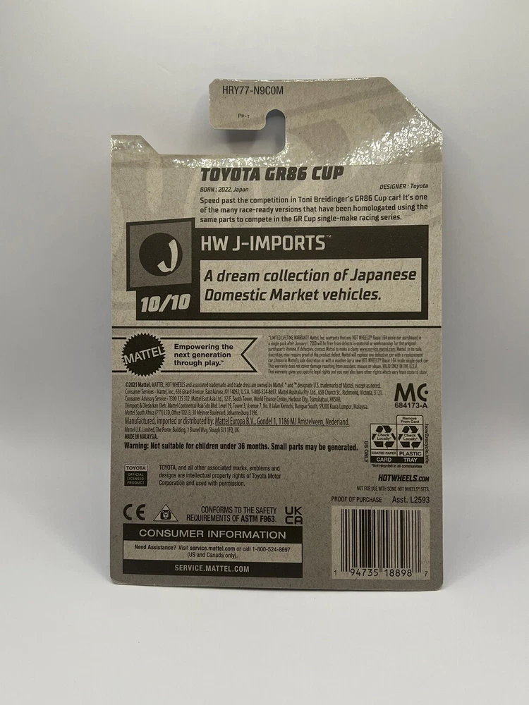 Introducing the 2024 Hot Wheels Toyota GR86 Cup, featuring a blue color and 1:64 scale. This limited edition diecast car is a must-have for Hot Wheels collectors and Toyota enthusiasts alike. The car comes in an unopened box, making it a perfect addition to any collection. With its detailed design and high-quality materials, this Hot Wheels car is sure to impress. The Toyota GR86 Cup is part of the Hot Wheels Basics character family, and it is a great way to commemorate the 2024 Toyota GR86. Don't miss your chance to own this amazing diecast car.