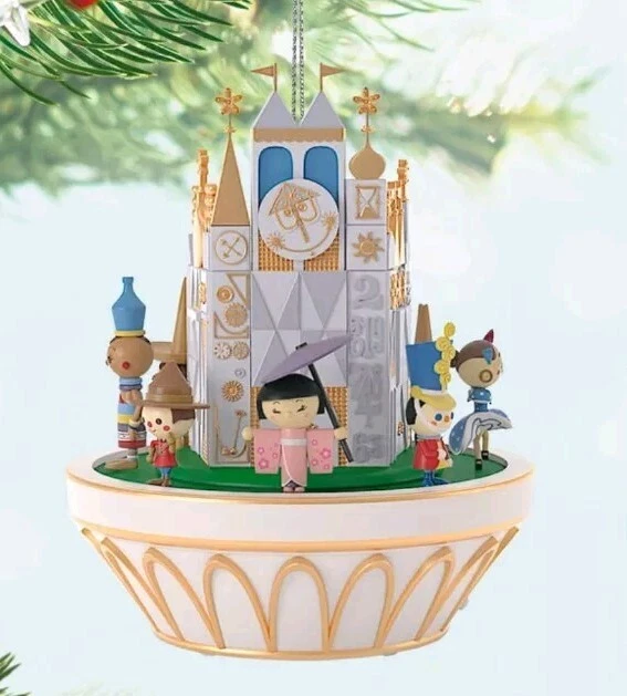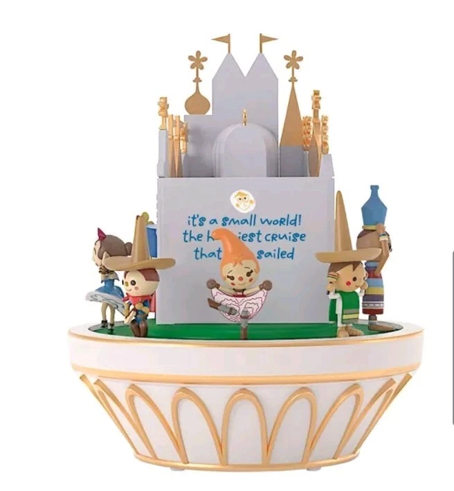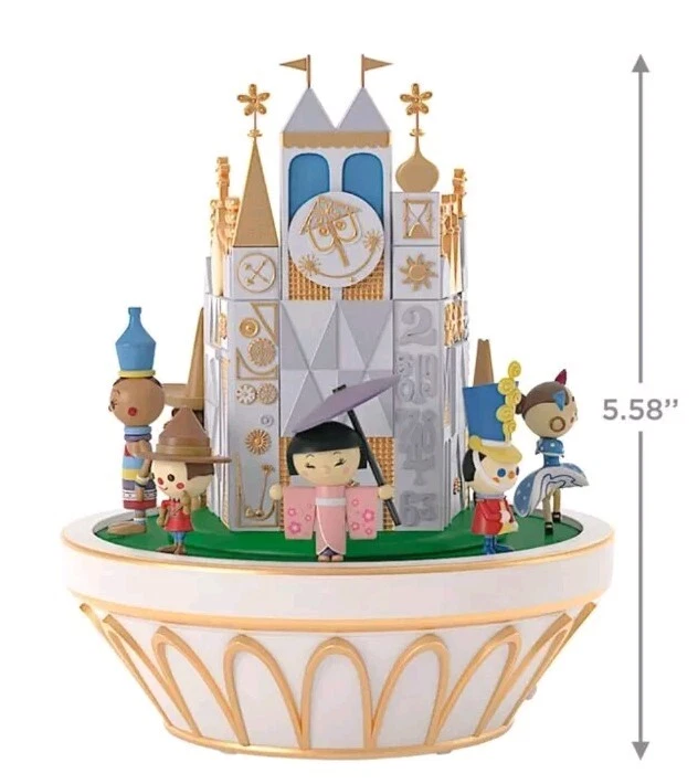 Bring home the sights and sounds of the "The Happiest Cruise That Ever Sailed" with this Christmas tree ornament. Inspired by the iconic facade of the beloved Disney Parks attraction It's a Small World, this decoration features continuous motion as the clock face ticks back and forth. Enjoy the accompanying tick-tock sound, or slide the switch on the base to silence it. Press the button to experience a performance of the unforgettable song as the children of the world joyfully parade around the clock tower. Requires Hallmark's Keepsake Power Cord (sold separately). Key Features: Connect the Magic Sound and Motion ornament to Hallmark's Keepsake Power Cord (sold separately) to see continuous motion of the clock face moving and hear it ticking. Press the button to watch the ornament perform a scene from the Disney Parks attraction, It’s a Small World. To turn off the continuous clock sounds, slide the switch on the base to OFF. Ornament plays sound effects of a ticking clock and music from the Disney song "It's a Small World." Additional Details: Artist-crafted by Robert Hurlburt. Plastic Christmas ornament features hanger attachment. Includes: One 2024 Keepsake Ornament in gift box for easy gift giving, preservation and storage. Requires Hallmark's Keepsake Power Cord (sold separately). No batteries necessary. Approx. Size in Inches: 4.6 x 5.58 x 4.6