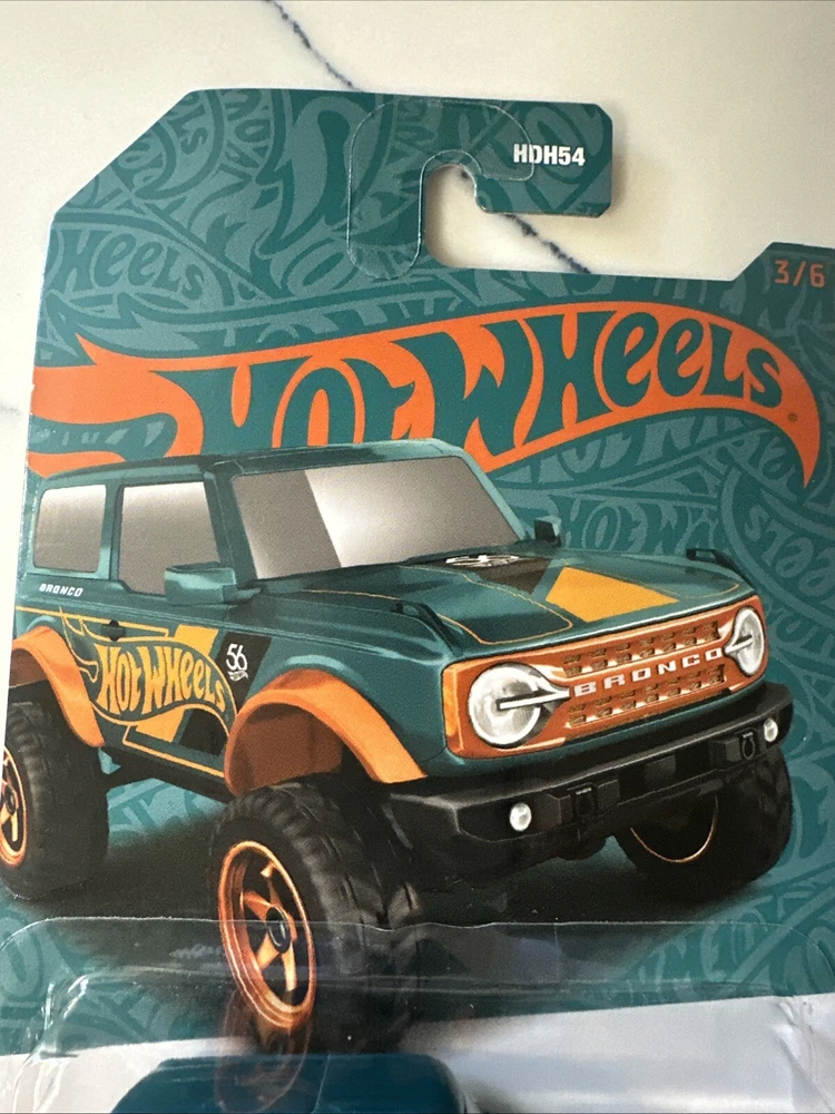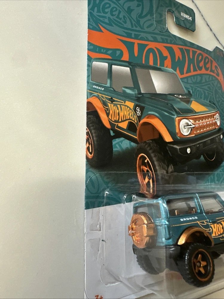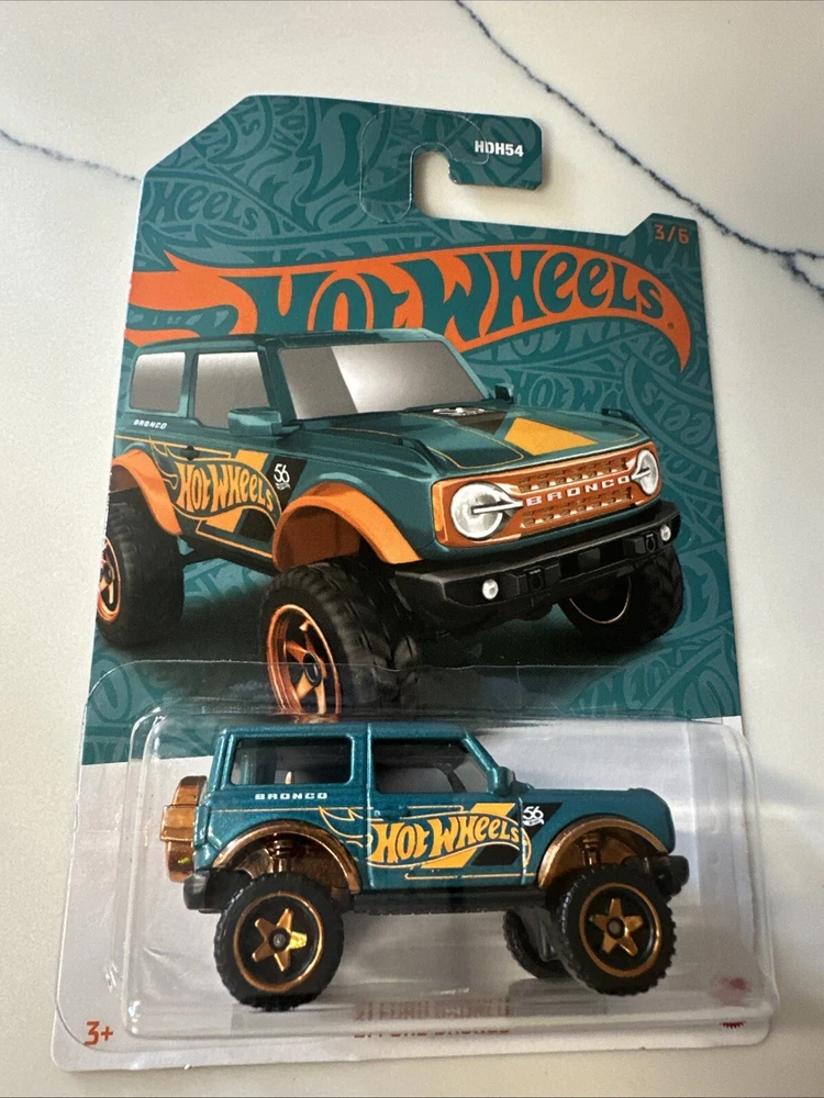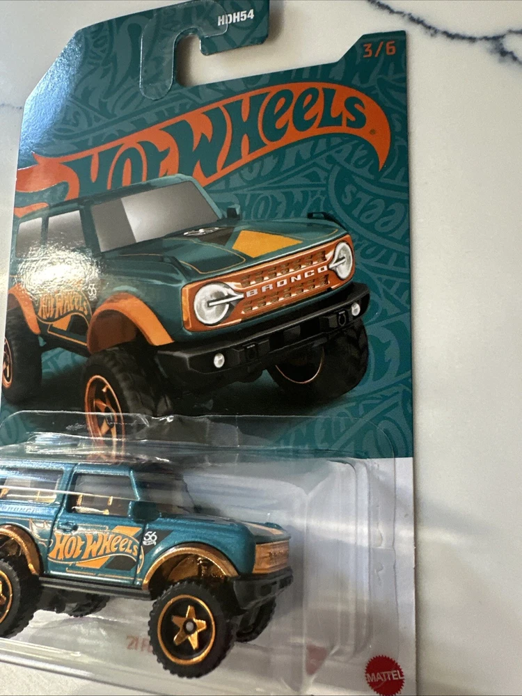 The 2024 Hot Wheels 56th Anniversary Green & Orange/Gold #3 '21 Ford Bronco is a 1:64 scale diecast SUV model from the limited edition series. Designed as part of Hot Wheels' 56th anniversary celebration, this green-colored Ford Bronco features orange metallic accents and comes in an unopened original package. Suitable for both boys and girls aged 3 and above, this collectible toy vehicle replicates the 2021 Ford Bronco model with intricate details and is a must-have for Hot Wheels enthusiasts. Please see all photos before purchasing, thank you!