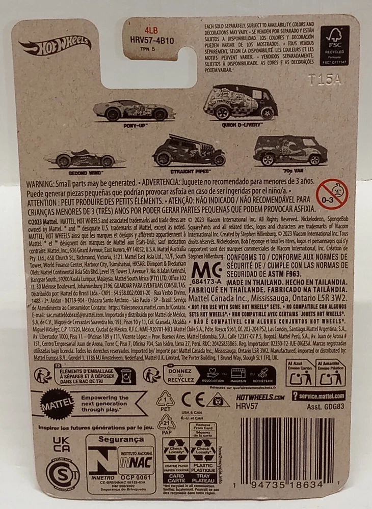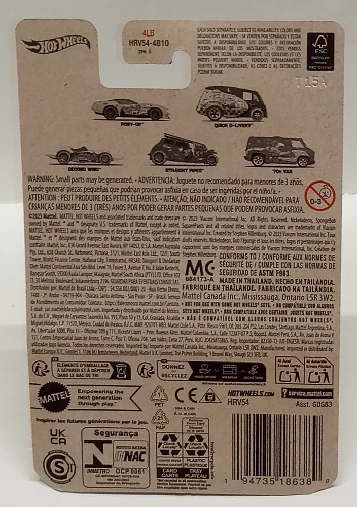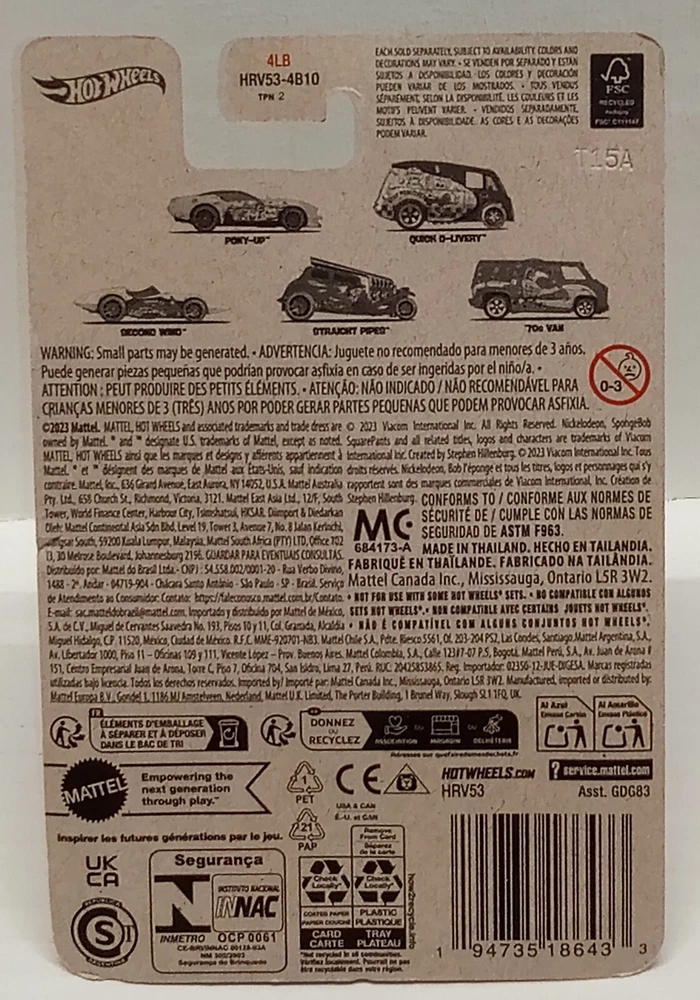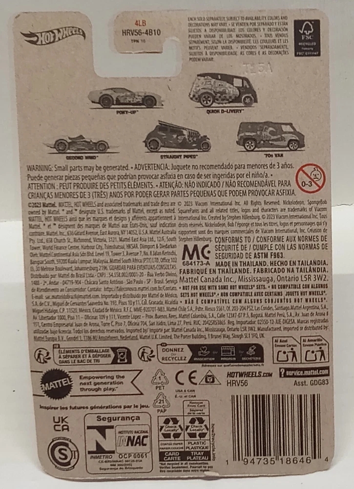 This 5-car set from Hot Wheels celebrates the 25th anniversary of Spongebob Squarepants. The vehicles are beautifully designed and crafted with diecast material in a 1:64 scale. The set includes cars from different series and themes, making it a perfect addition to any collection. The cars are manufactured in Thailand and feature the iconic characters from the beloved cartoon series. This set is a must-have for any Spongebob Squarepants fan or Hot Wheels collector. Get your hands on this amazing set today!