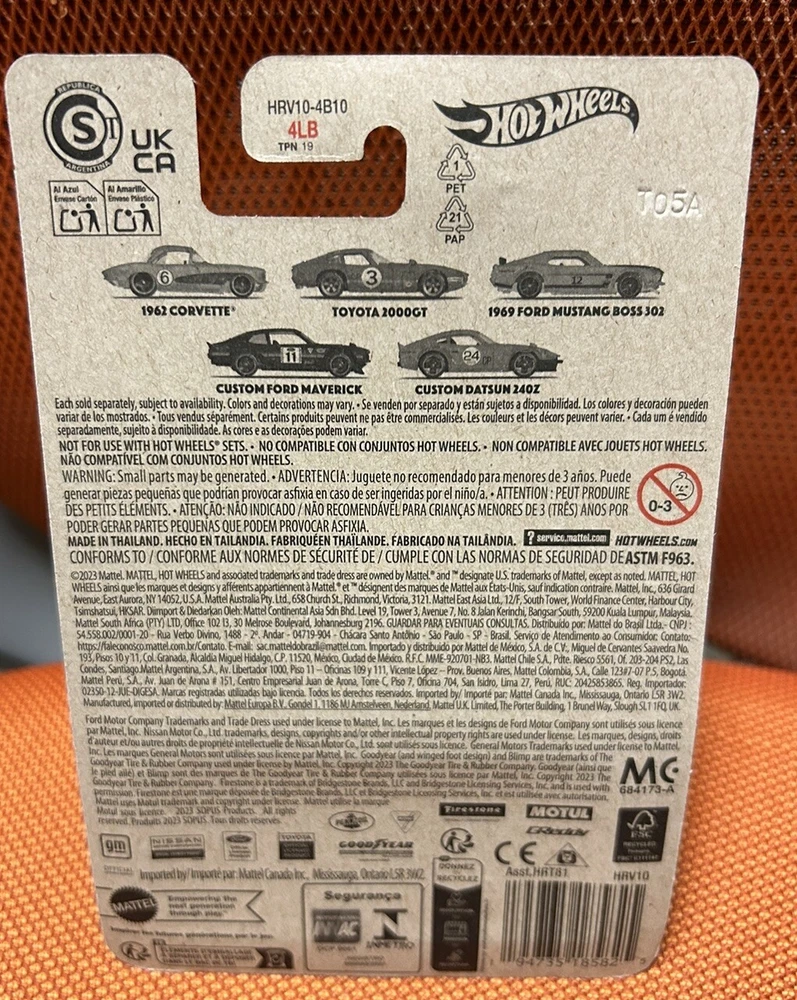 The product is a 2024 Hot Wheels Vintage Racing Club Custom Datsun 240Z 1:64 Diecast car in orange color. It is a limited edition model from the Hot Wheels brand, part of the Vintage Racing series. The car is unopened in its original box, featuring a vintage racing club theme. It is a collectible toy vehicle manufactured in Thailand.