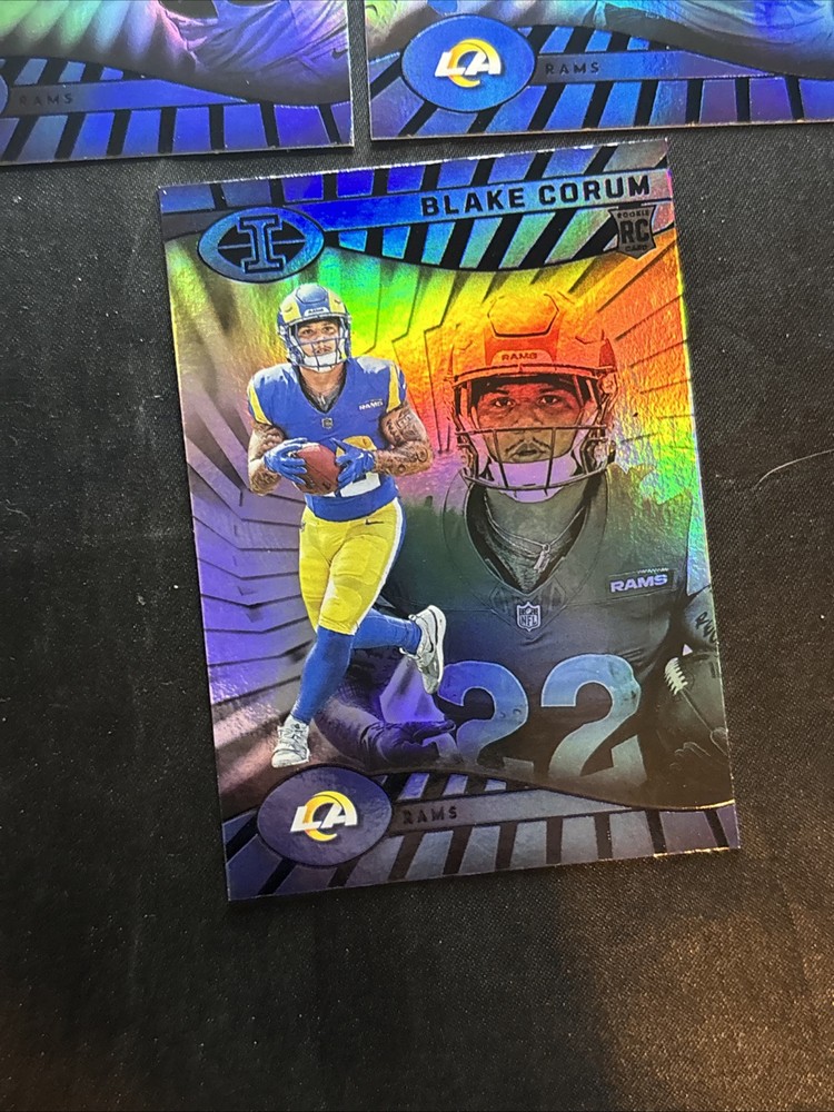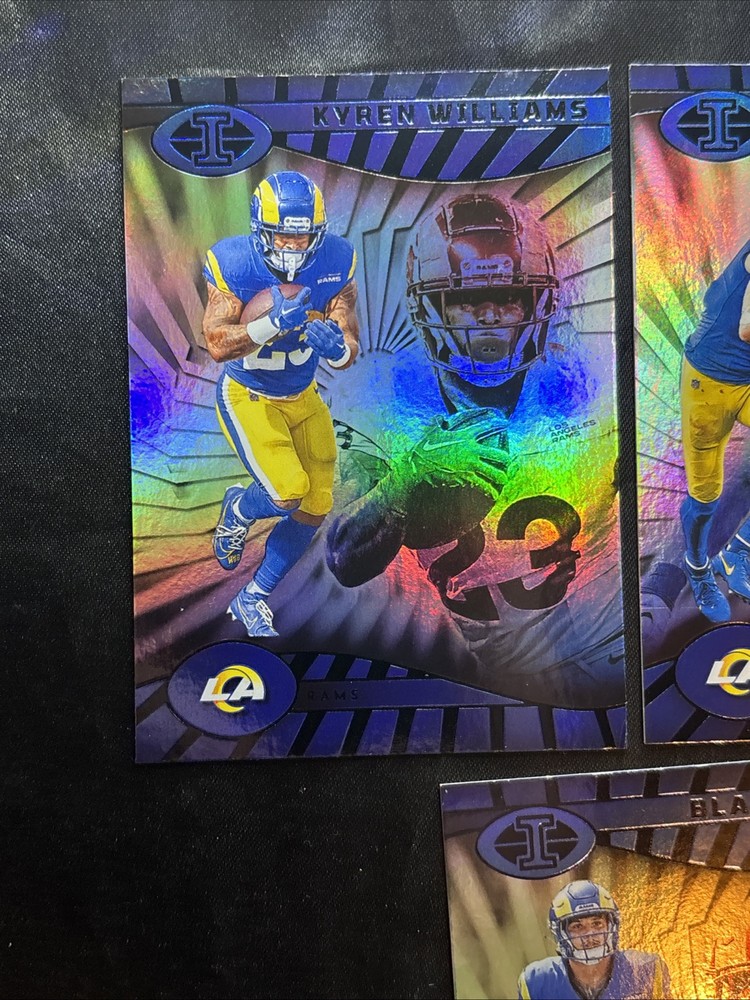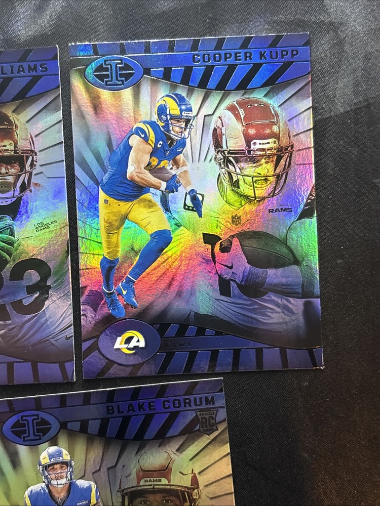Year Manufactured:2024Vintage:NoSeason:2024Manufacturer:PaniniSport:FootballNumber of Cards:3Set:IllusionsMaterial:Card StockFeatures:Rookie, Base SetLeague:National Football League (NFL)Autographed:NoCard Size:StandardCountry/Region of Manufacture:United StatesPlayer/Athlete:Cooper Kupp, Kyren Williams, Blake CorumOriginal/Licensed Reprint:OriginalType:Sports Trading CardTeam:Los Angeles Rams