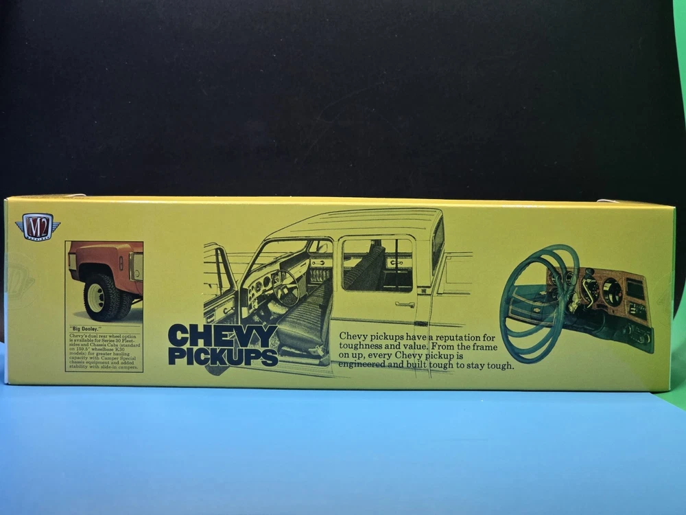 Features: Unopened Box, With Case, Advertising Specimen, With Stand UPC: Does not apply Autographed: No Year of Manufacture: 2024 Brand: M2 Machines Scale: 1:64 Vehicle Type: Truck Material: Diecast Series: Chevy Pickups Color: Multi-Color Model: Silverado Vehicle Make: Chevrolet gtin13: Does not apply Vehicle Year: 1973 Character Family: Chevy Pickups Theme: Chevy