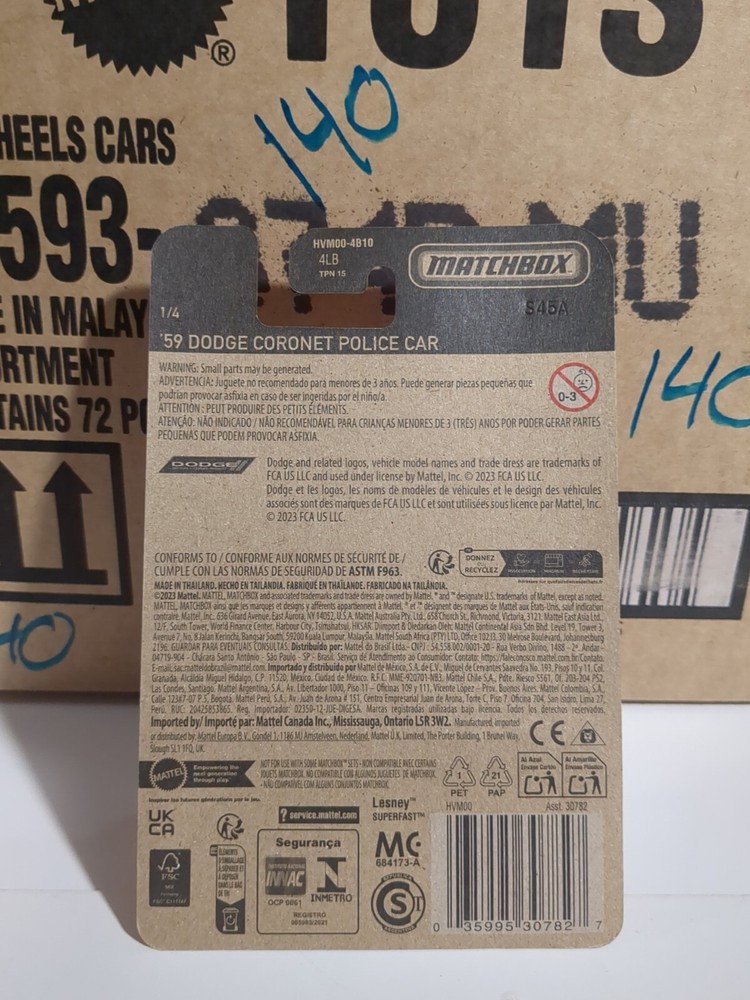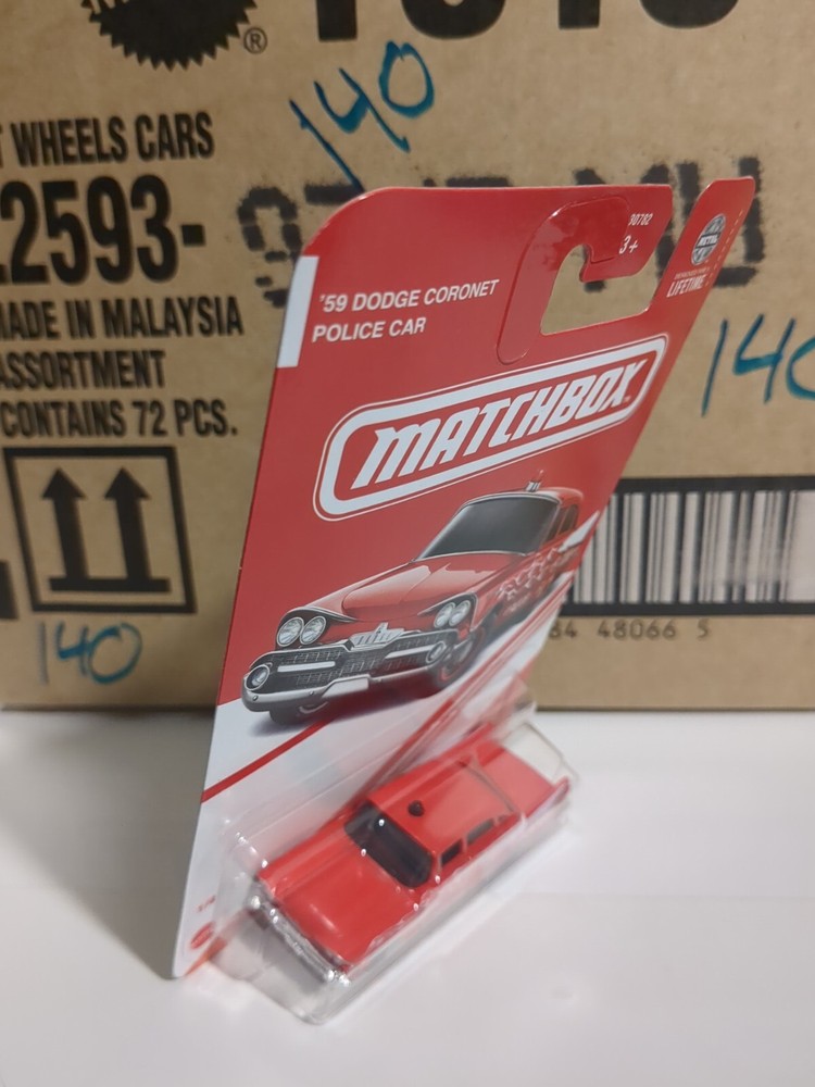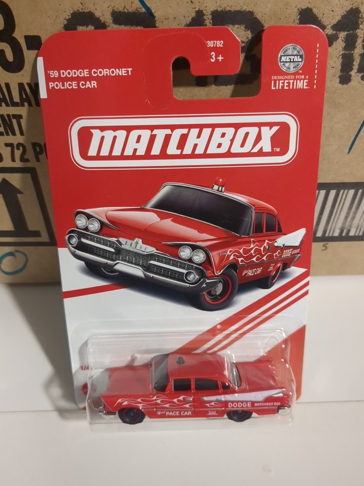 Introducing the 2024 MATCHBOX TARGET RED EDITION EXCLUSIVE ‘ 59 DODGE CORONET POLICE CAR. This limited edition diecast car is made of metal and comes unopened in its original box. The vibrant red color and special features make it a must-have for collectors and enthusiasts alike. With a scale of 1:64, this Dodge Coronet model car is perfect for boys and girls of all ages. It belongs to the Hot Wheels Red Edition series and is a great addition to any collection. The car is based on the 1959 model and has a classic police car design. Don't miss your chance to own this exclusive Matchbox car. See pics for condition
