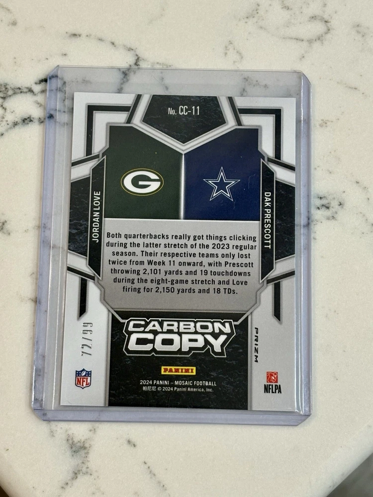 2024 Mosaic Football - Jordan Love & Dak Prescott #CC-11-Blue Carbon Copy /99