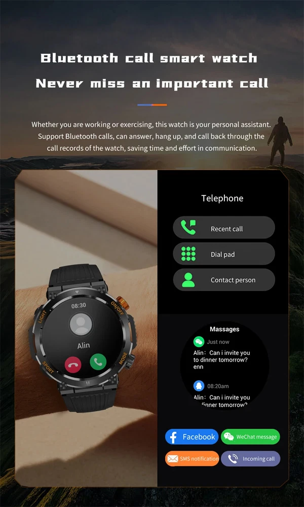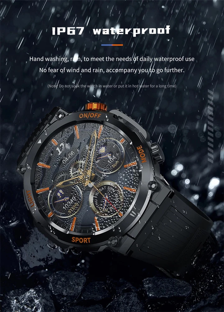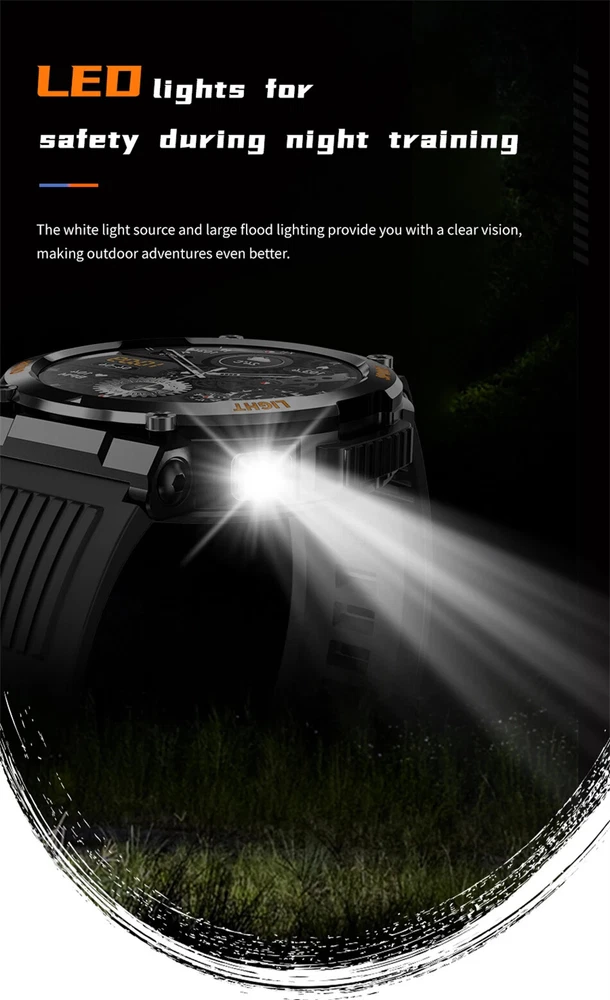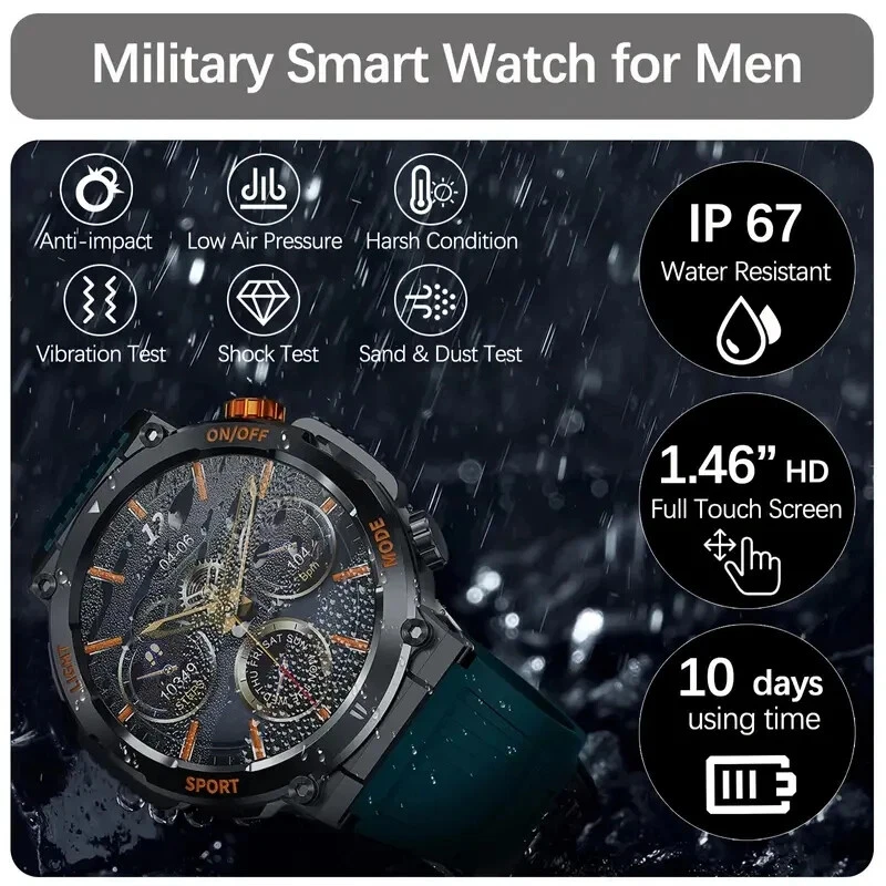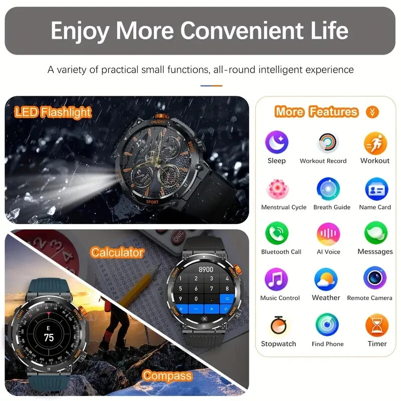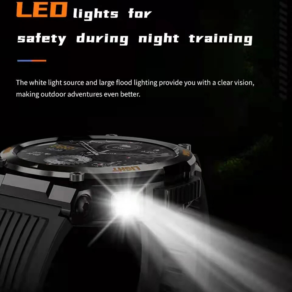 This smartwatch is a game-changer! The bright 1.46" display looks amazing, and the flashlight feature is super handy. Love that it's waterproof and rugged for outdoor adventures while tracking all my fitness stats. The battery lasts forever, and Bluetooth 5.0 keeps it connected smoothly. With so many language options, it's perfect for travelers too!