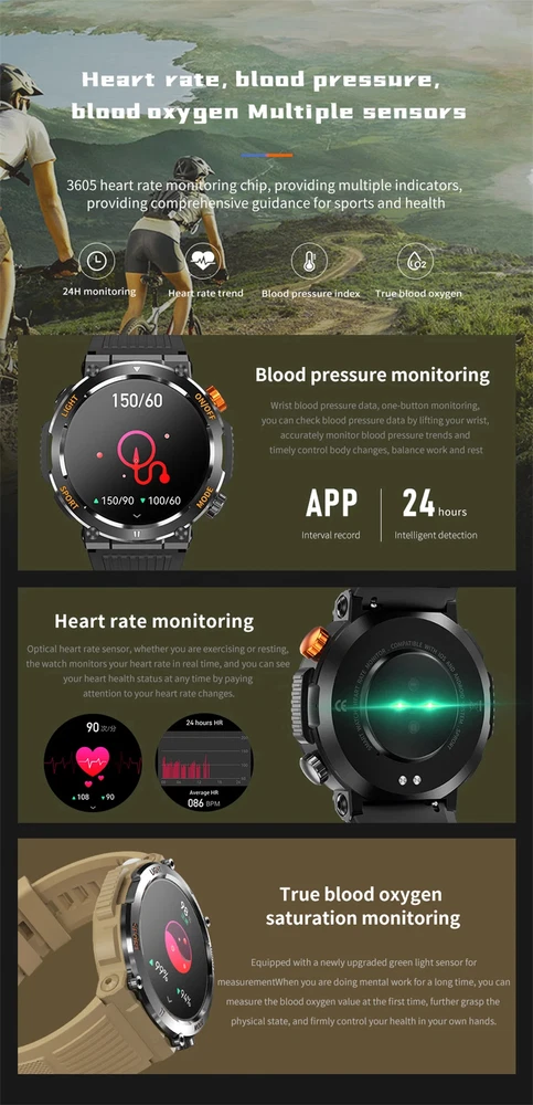 This smartwatch supports languages such as : Simplified Chinese, Traditional Chinese, English, German, Russian, Spanish, Portuguese, French, Japanese ,Arabic, Dutch, Italian, Czech, Greek, Hebrew, Indonesian, Malay, Polish, Thai Vietnamese, Finnish, Romanian, Turkish, Croatian) A brief description of the internal accessories of this smartwatch: Bluetooth: BLE5.0 Display screen: 1.46 "360 * 360 IPS display screen Physical buttons: 2 (with encoder) touch: Full screen touch Battery: 450mAh polymer battery Charging method: USB magnetic suction charging Description of internal accessories for this smartwatch: 1. Built-in dial: With 5 built-in dials, it supports custom dials and downloading of dials 2. Basic functions: "Data, Sports, Sports Record, Weather, Information, Women, Music 3. Alipay, sidebar, stopwatch, timer, alarm clock, payment code, business card, calendar, calculator, search for mobile phone, camera“ 4. Important information: Bluetooth call connection: Connect once 5. Health management: exercise monitoring, sleep monitoring, heart rate monitoring, blood pressure monitoring, respiratory exercise 6. Sports modes: 9 sports modes on the watch end, and massive sports modes on the APP end 7. Call: dialing, frequently used contacts, call records, voice assistant, WeChat Sports: Synchronize the movement steps of the watch to the WeChat leaderboard 8. Messages and call reminders: "Phone, SMS, WeChat, QQ, 9. WhatsApp, Line, Facebook, Facebook messenger, Kaokao,Twitter、Skype 9. Firmware upgrade: Watch firmware can be upgraded over the air through the APP
