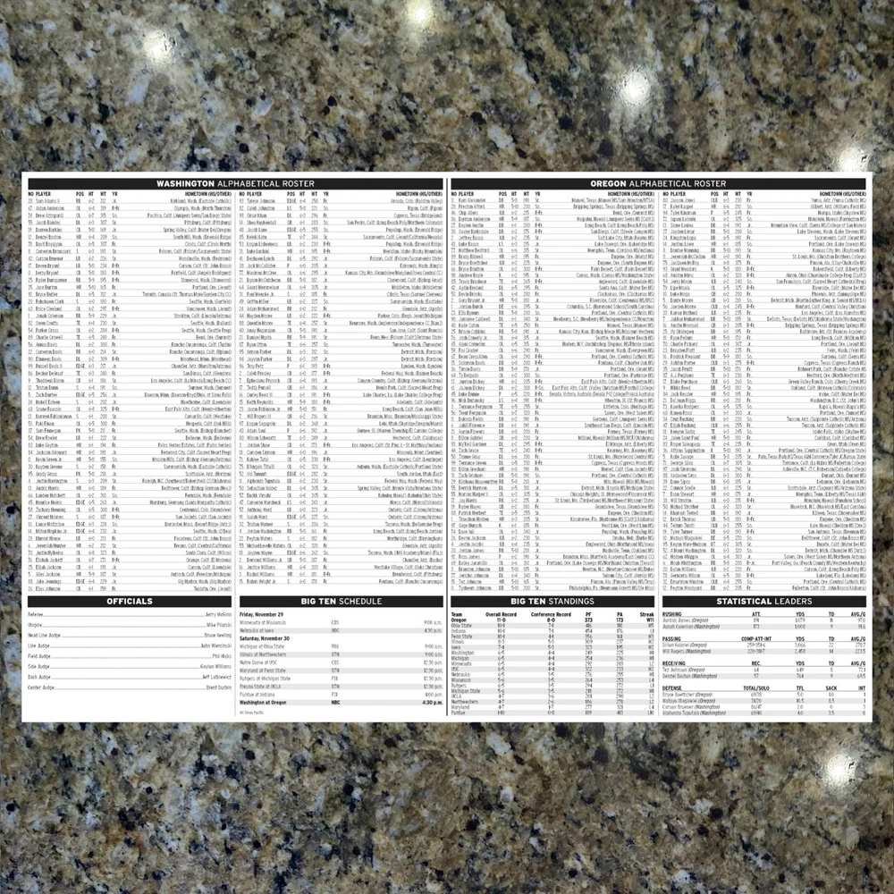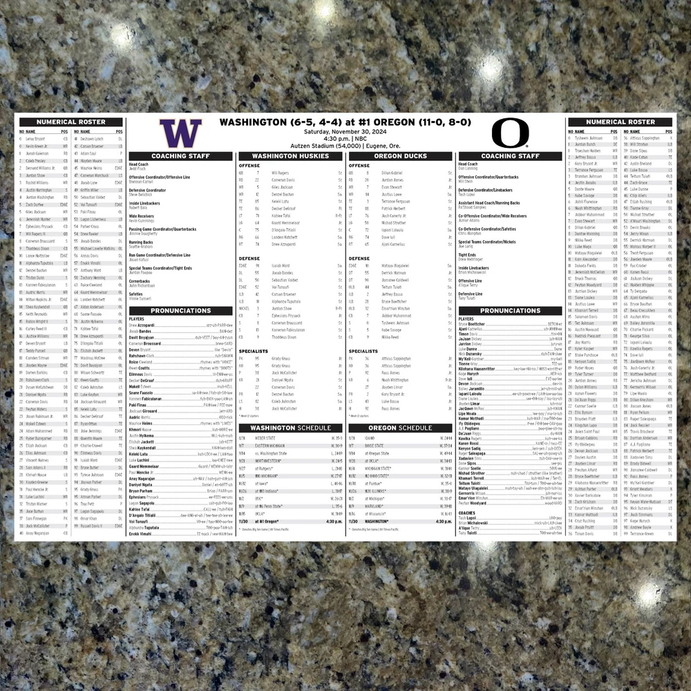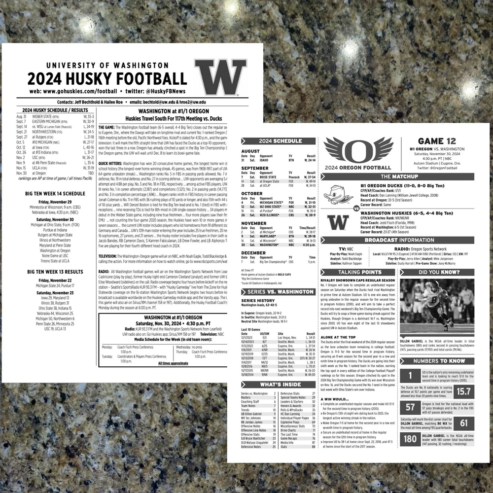 2024 Oregon vs Washington - Game Flipcard & Program Notes Football NCAA Nov 30
