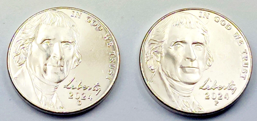 2024 P & D Jefferson Nickel - BU Set Coins will be pulled from the Original Bank Wrapped rolls of which the photos originated. Shipping Included. See photos for details.