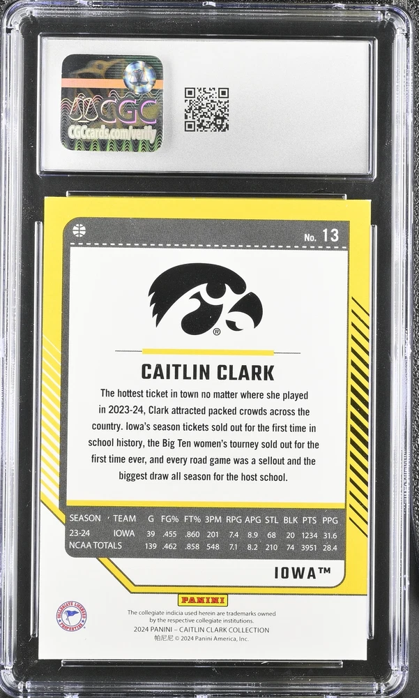 You are purchasing a 2024 Panini Caitlin Clark Collection Caitlin Clark #13 Donruss CGC 9. You will receive the exact item in the photographs. Thank you for looking. Listed With Mascot .