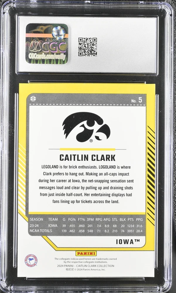 You are purchasing a 2024 Panini Caitlin Clark Collection Caitlin Clark #5 Donruss CGC 9. You will receive the exact item in the photographs. Thank you for looking. Listed With Mascot .