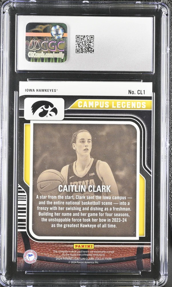 You are purchasing a 2024 Panini Caitlin Clark Collection Caitlin Clark #CL1 Campus Legends CGC 9. You will receive the exact item in the photographs. Thank you for looking. Listed With Mascot .
