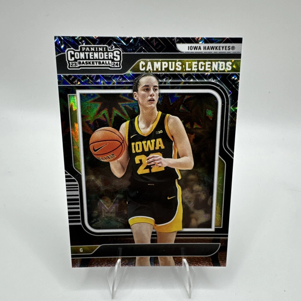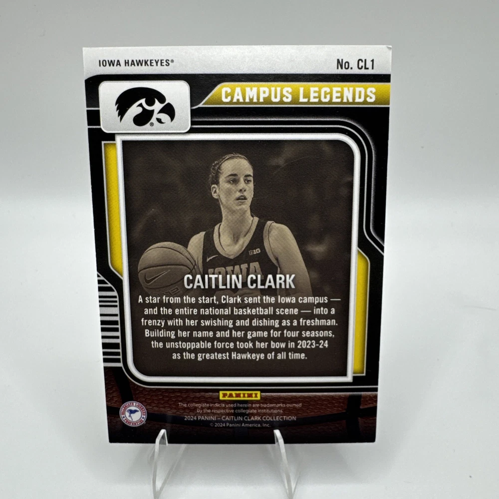 Elevate your sports card collection with the 2024 Panini Caitlin Clark Collection's Campus Legends Fireworks card, featuring the talented basketball player Caitlin Clark of the Iowa Hawkeyes. With its stunning Fireworks parallel design, this card is a standout piece commemorating Clark's remarkable achievements on the court. As a part of the highly sought-after 2024 set, it's a must-have for collectors and fans alike. The card, numbered CL1, boasts the dynamic Insert and Parallel/Variety features that make it a unique addition to any collection. Whether you're a seasoned collector or just starting out, the memorable design and significant rookie status of this card make it an essential item to own, celebrating the spirit and excitement of NCAA basketball.