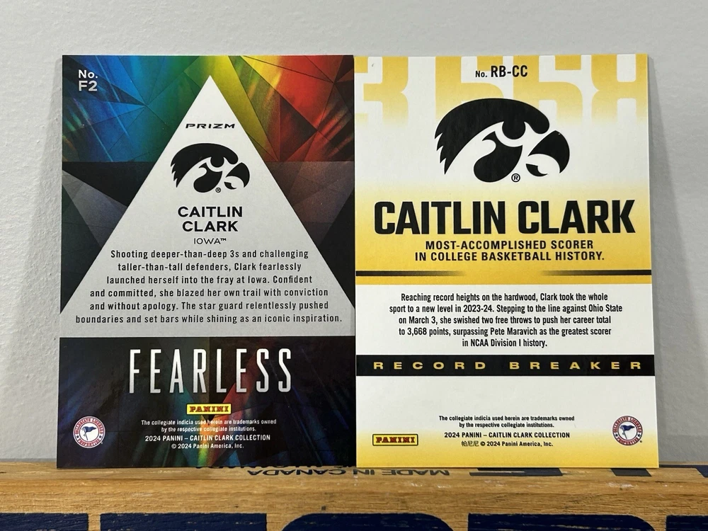 2024 Panini Caitlin Clark Collection Fearless Prizm F2 -Hawkeyes + BONUS Rookie Combine shipping is $0.50/per card or $1.00/per lot Shipping to Canada is $3 and to United States is $10 PLEASE NOTE: Some cards shipped may take longer to arrive then expected given delays in Canada Post and United States Postal Services. Please be patient. Could be 2wks to a month in some areas so please take this into consideration when bidding as I do not guarantee the estimated arrival times provided through the shipping options on ebay so please be patient